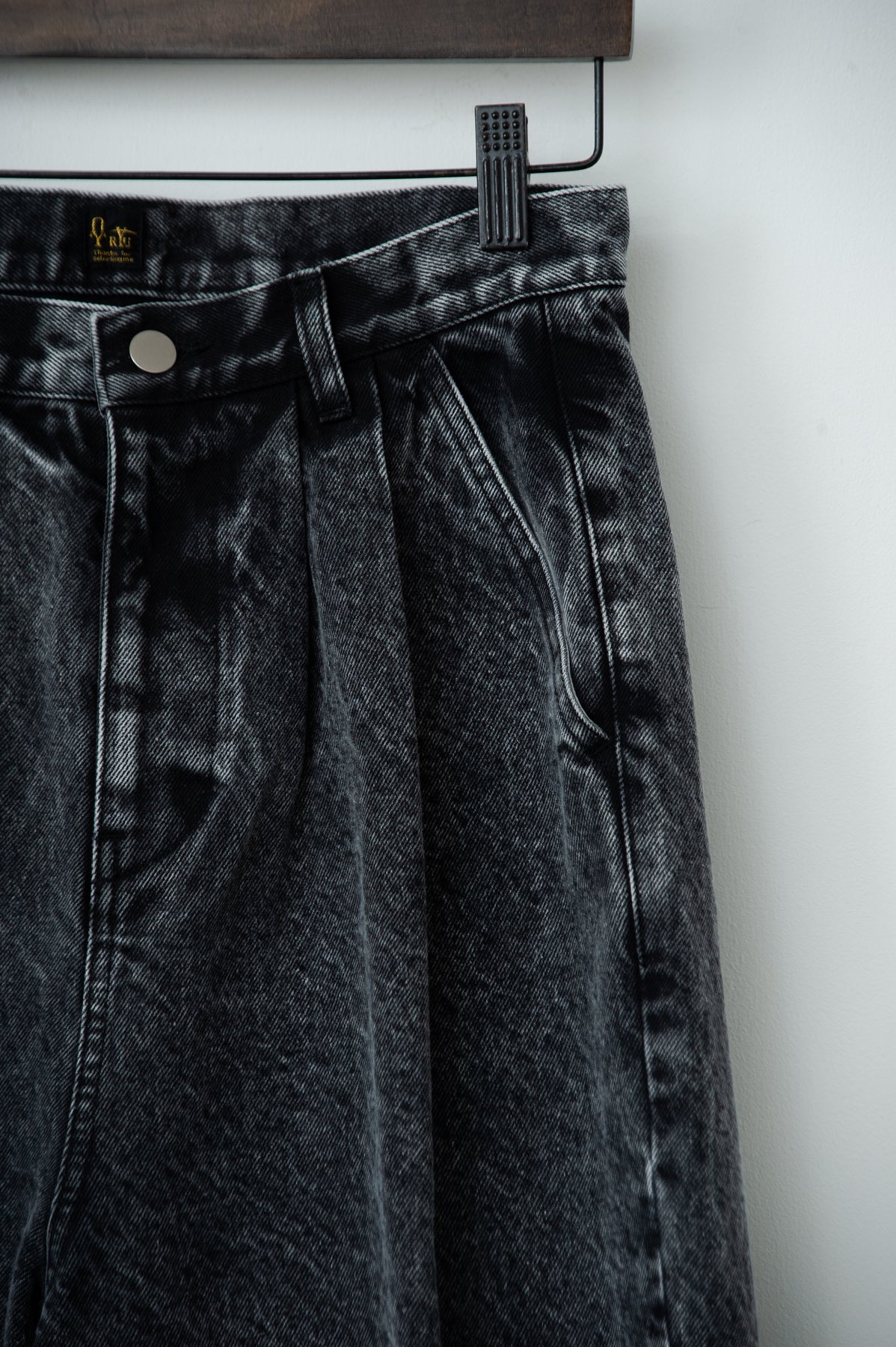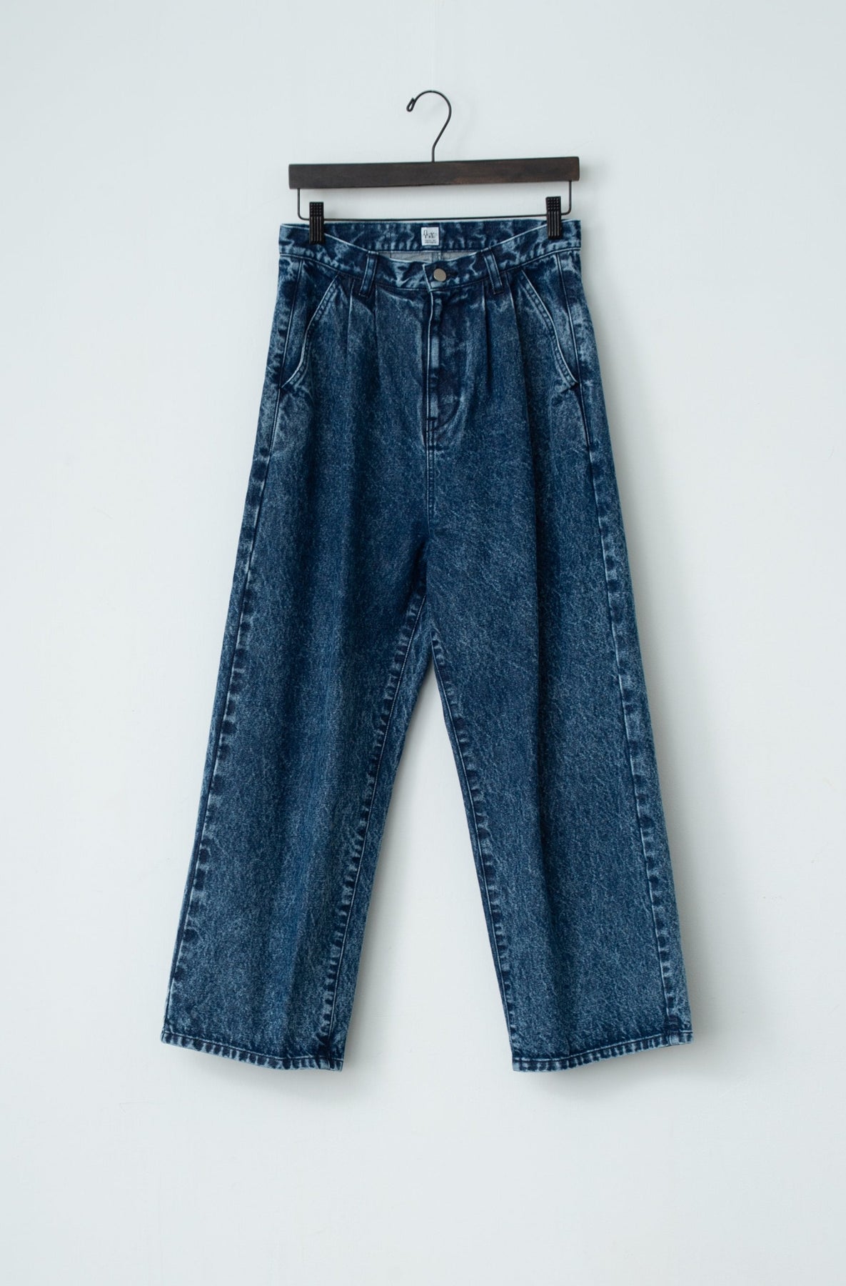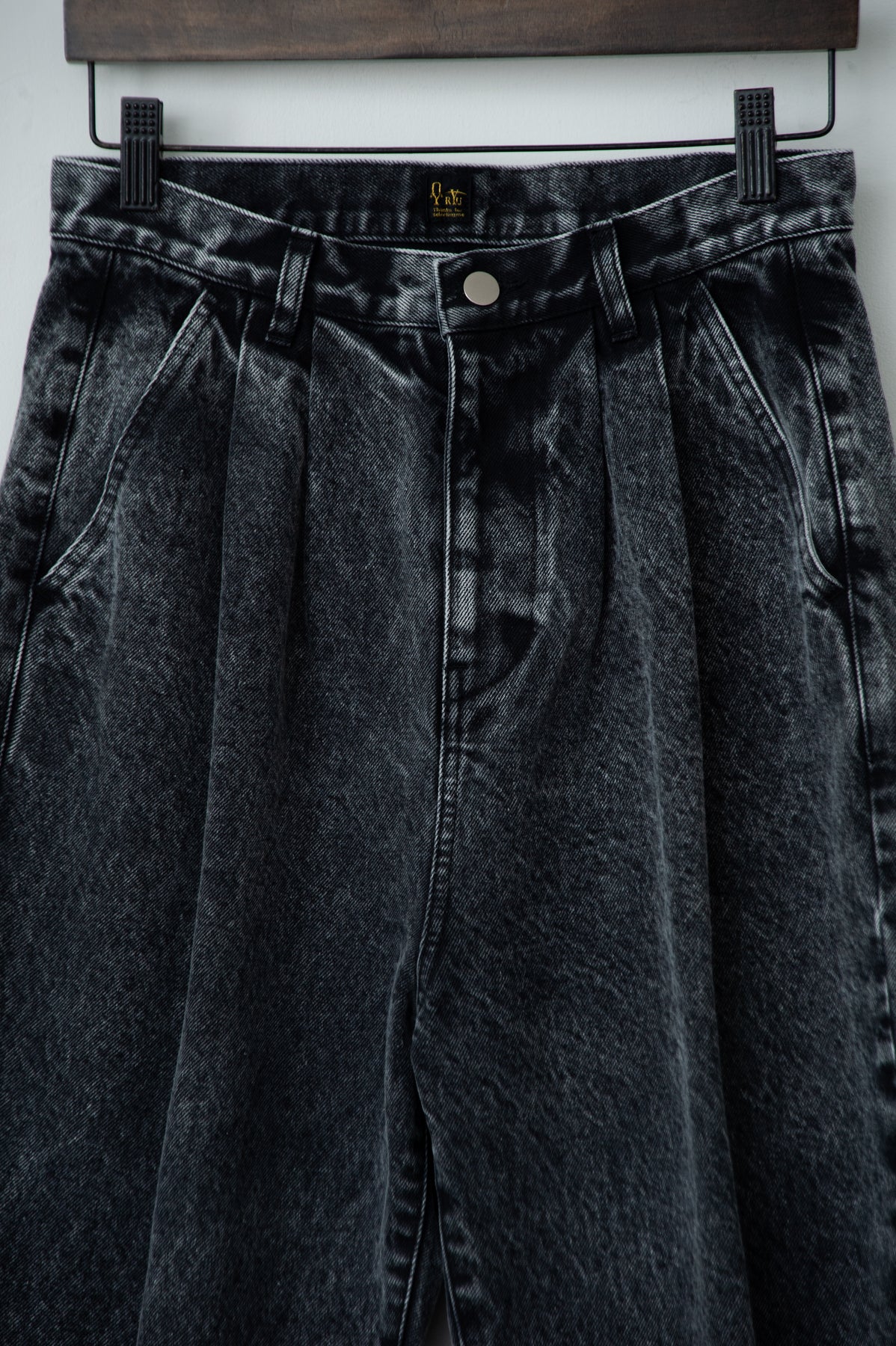 ゆったりとしたシルエットながらも重たくなりすぎないデニム地の2タックスラックスです。