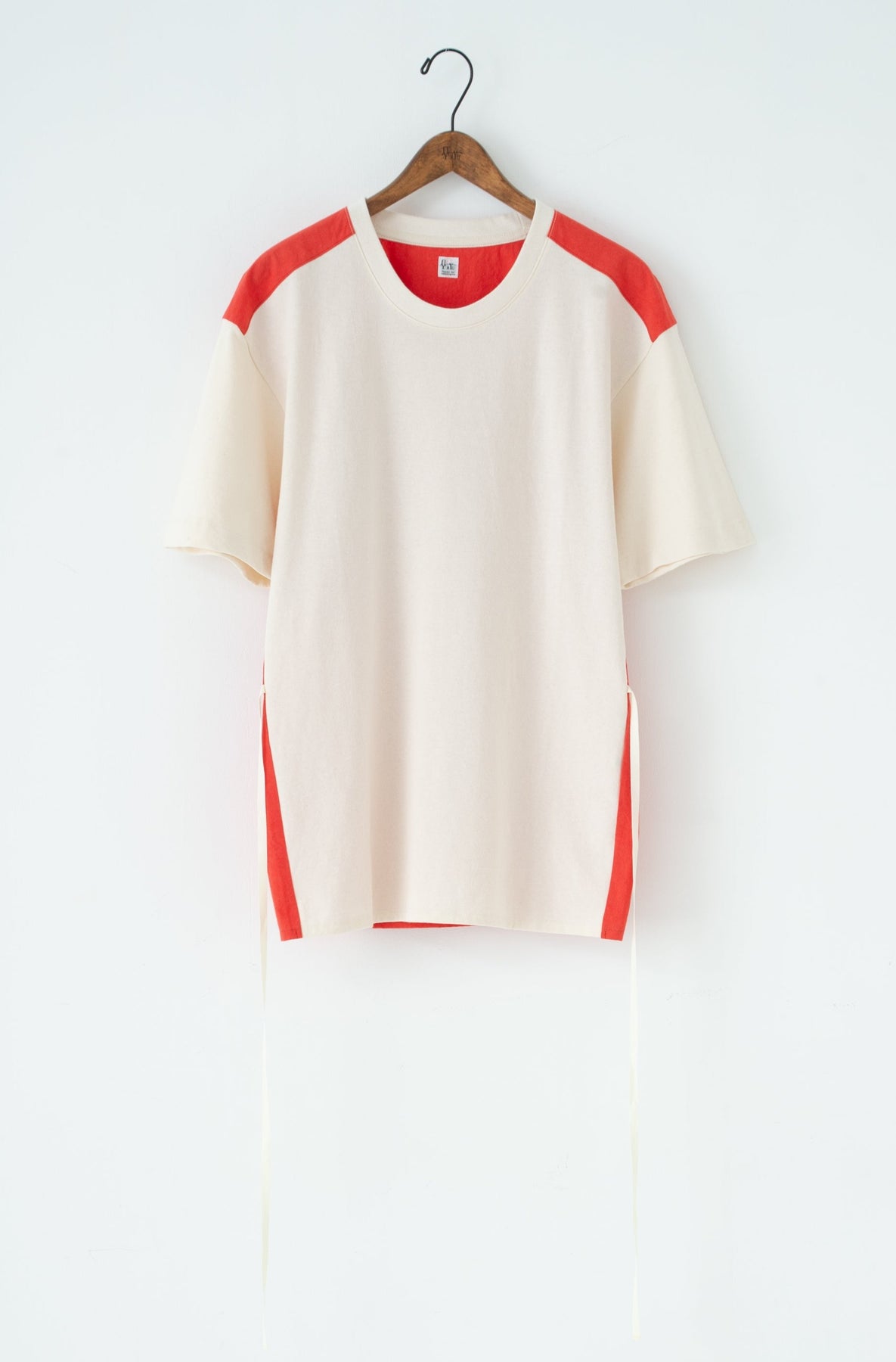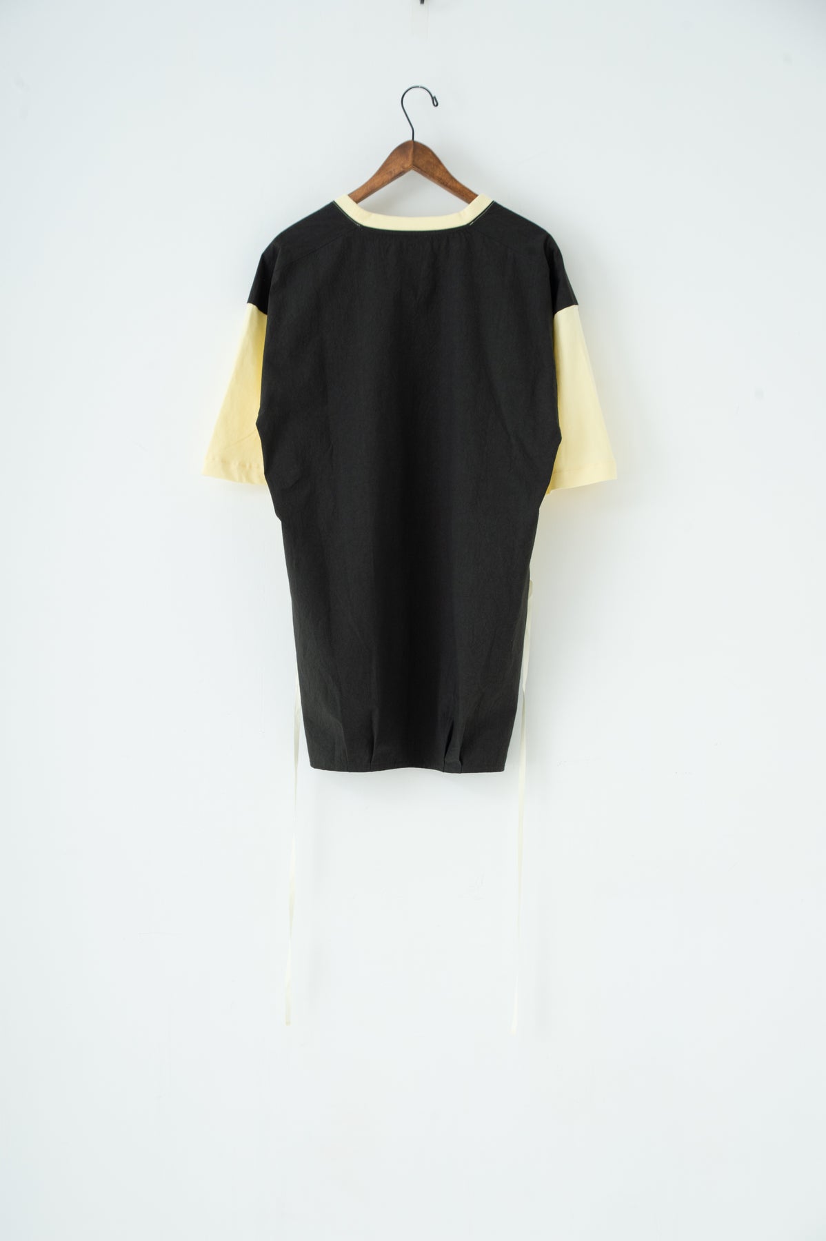 伸縮性がある天竺生地と柔らかいテンセルブレードをバイカラーでドッキングしたデザインカットソーです。