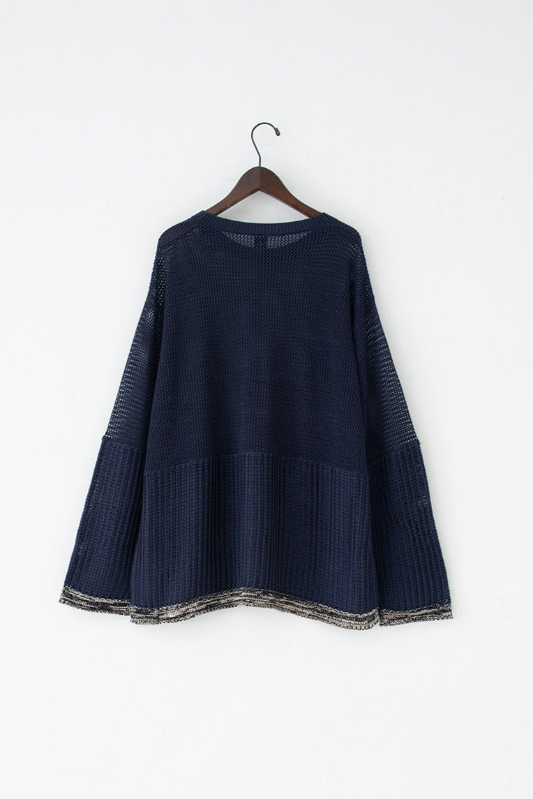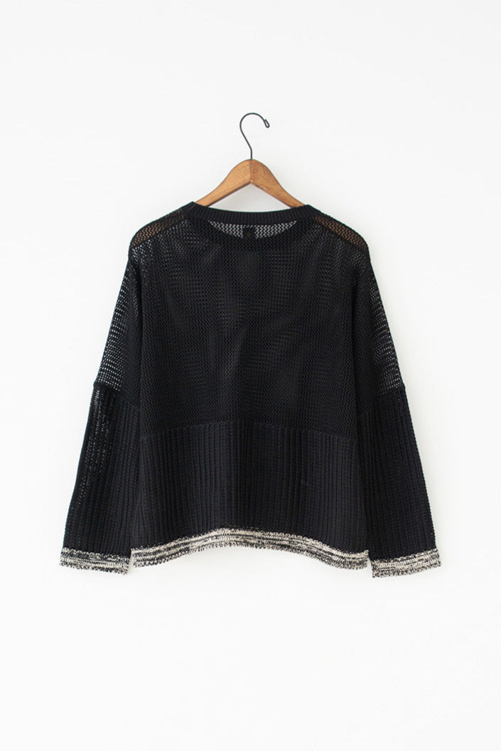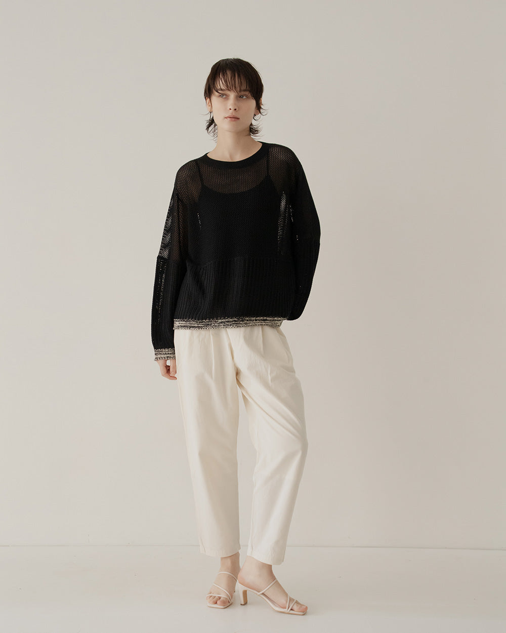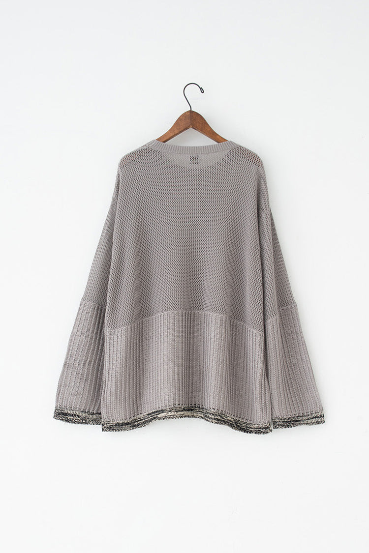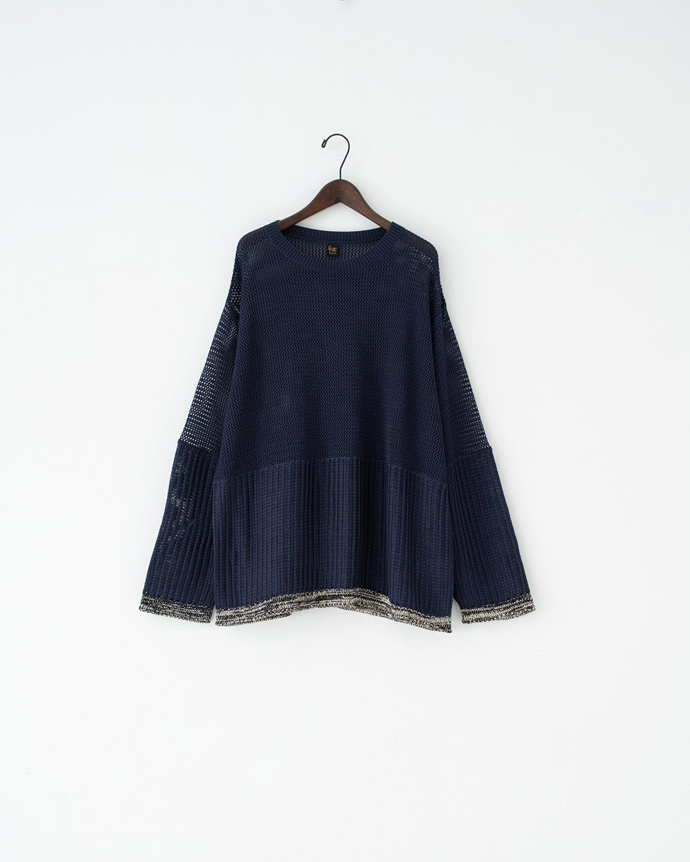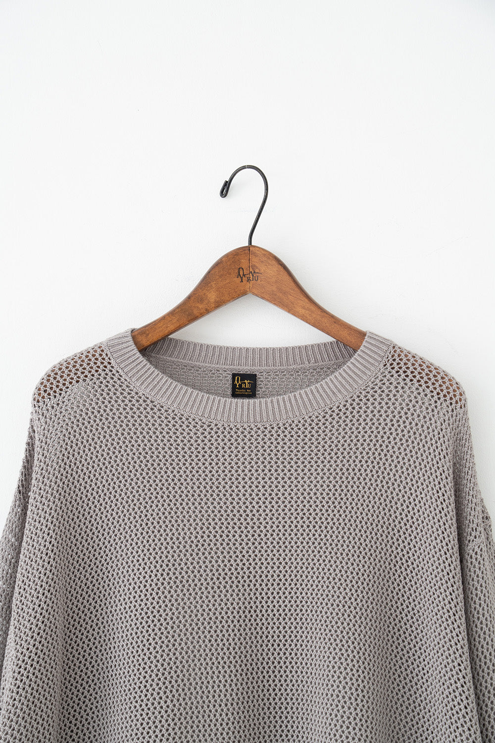 上部は透かし編み(メッシュ)下部を針抜きの天竺編みにしシアー具合が異なるデザインです。