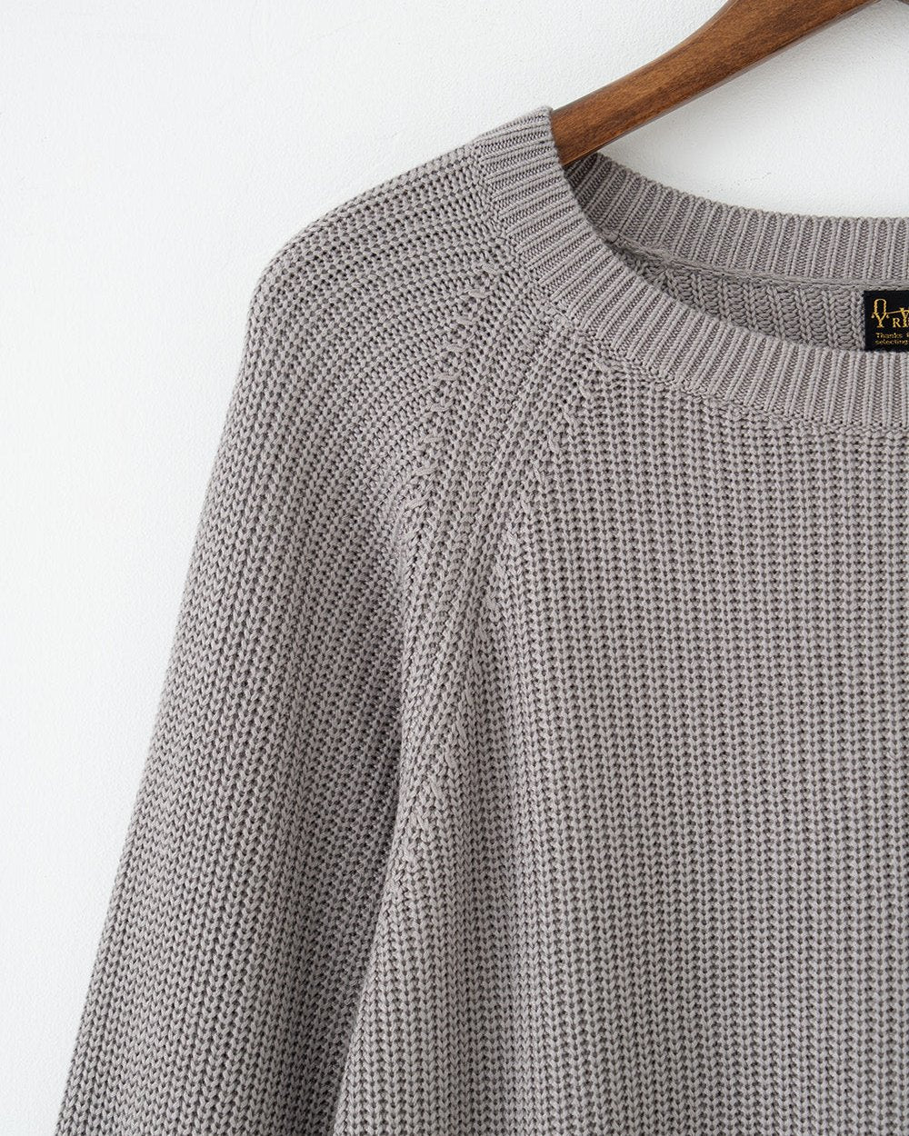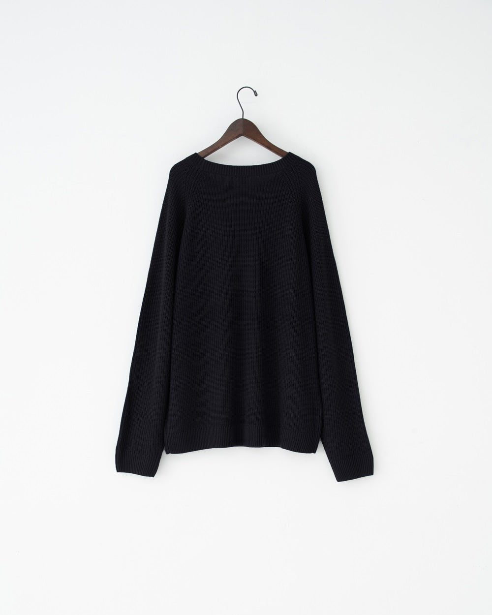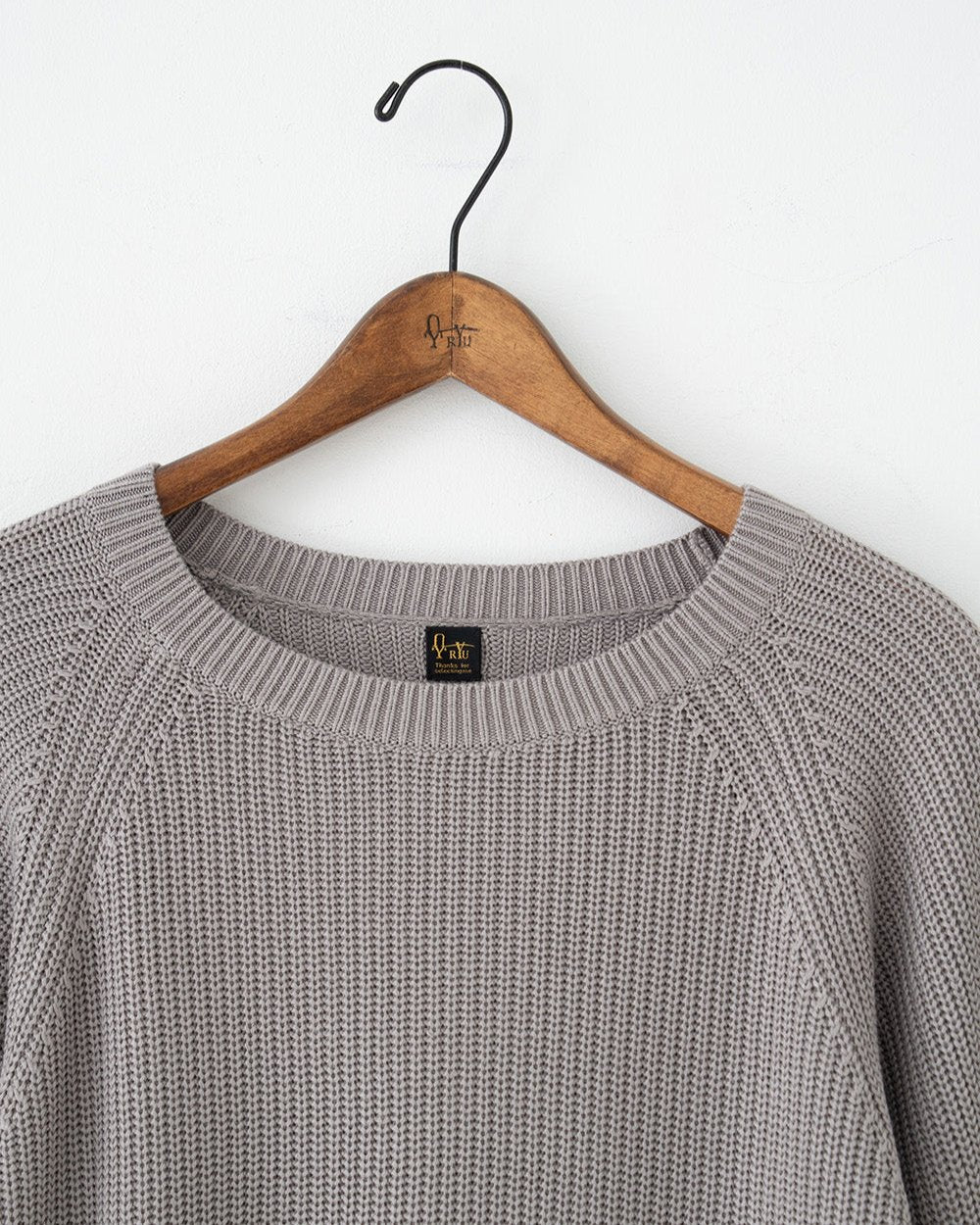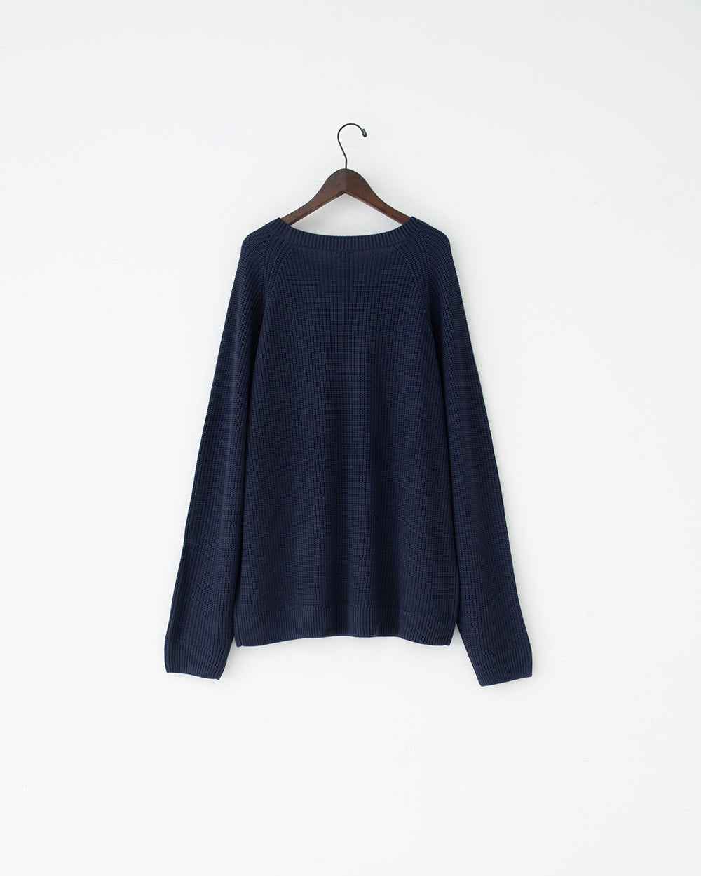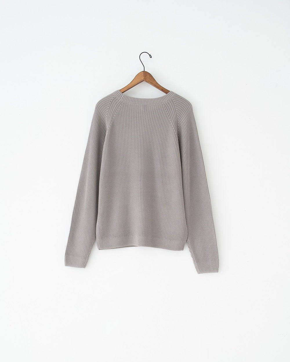 ラグランスリーブとシルキータッチの艶感など25SSコンセプトである"Coastal Breese"の浜辺のそよ風を背景に成熟した人物が佇んでいる様にも合致するアダルトなリラックスニットです。