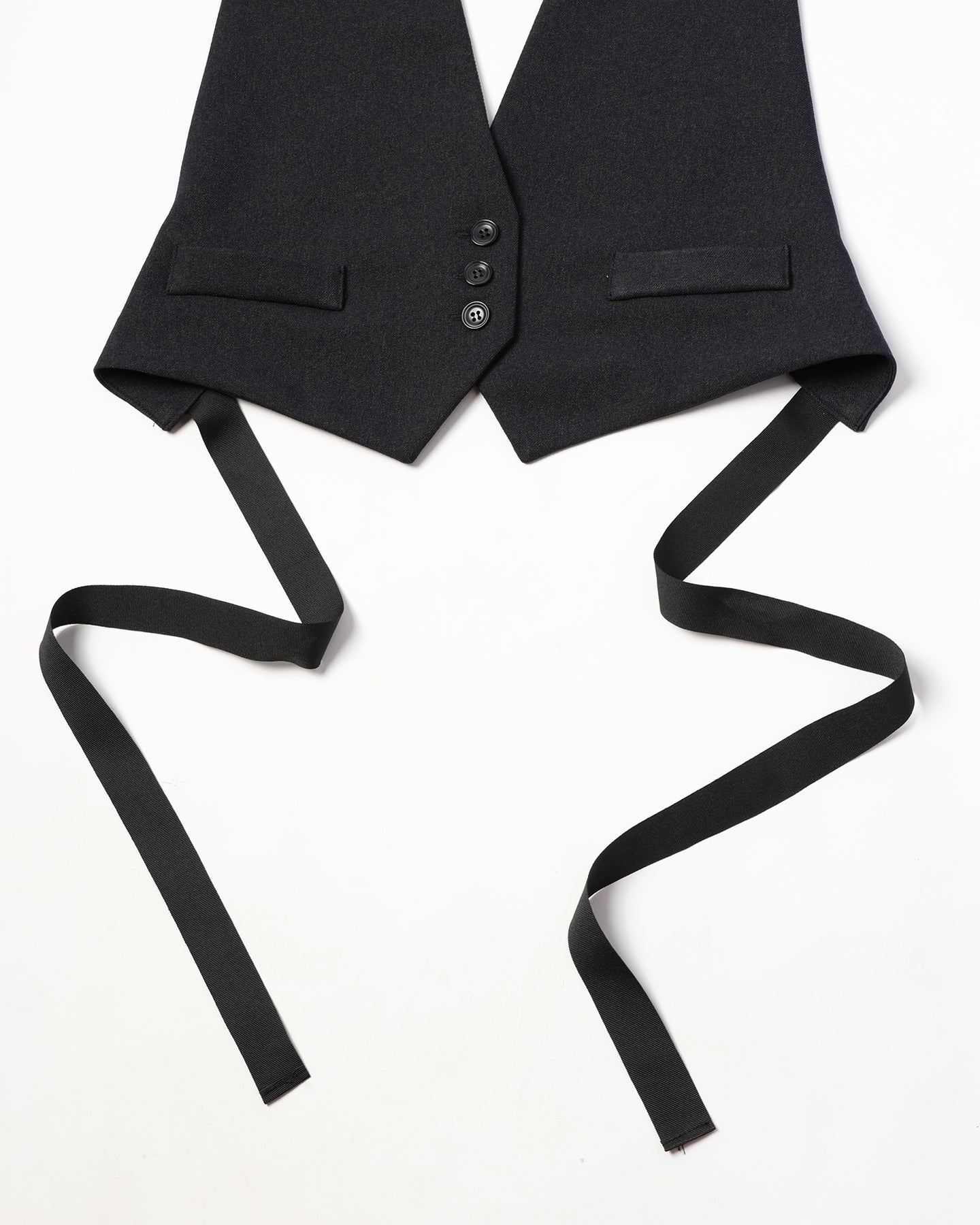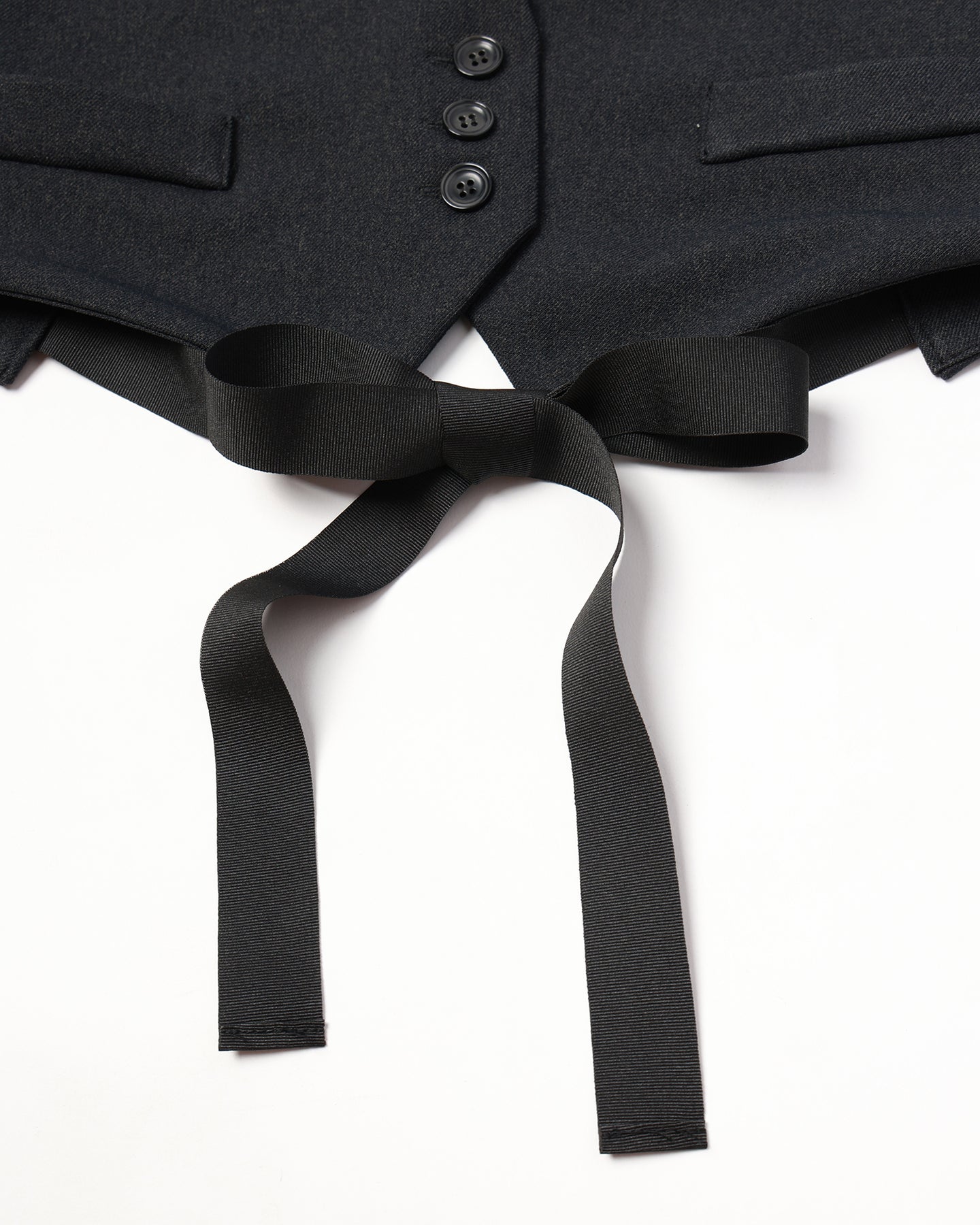 ミニマルなデザインのショートジレは、オールシーズンに対応し様々なスタイリングの幅を広げてくれる小物使い感覚で取り入れていただけるお洋服です。バックスタイルのグログランテープによりFサイズにて多くの方々へのご提案が可能です。