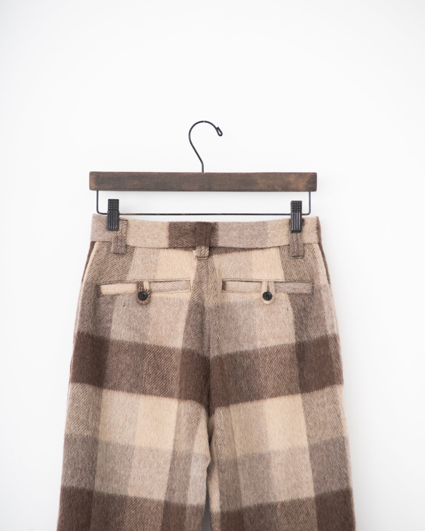 block plaid wide full-length slacks