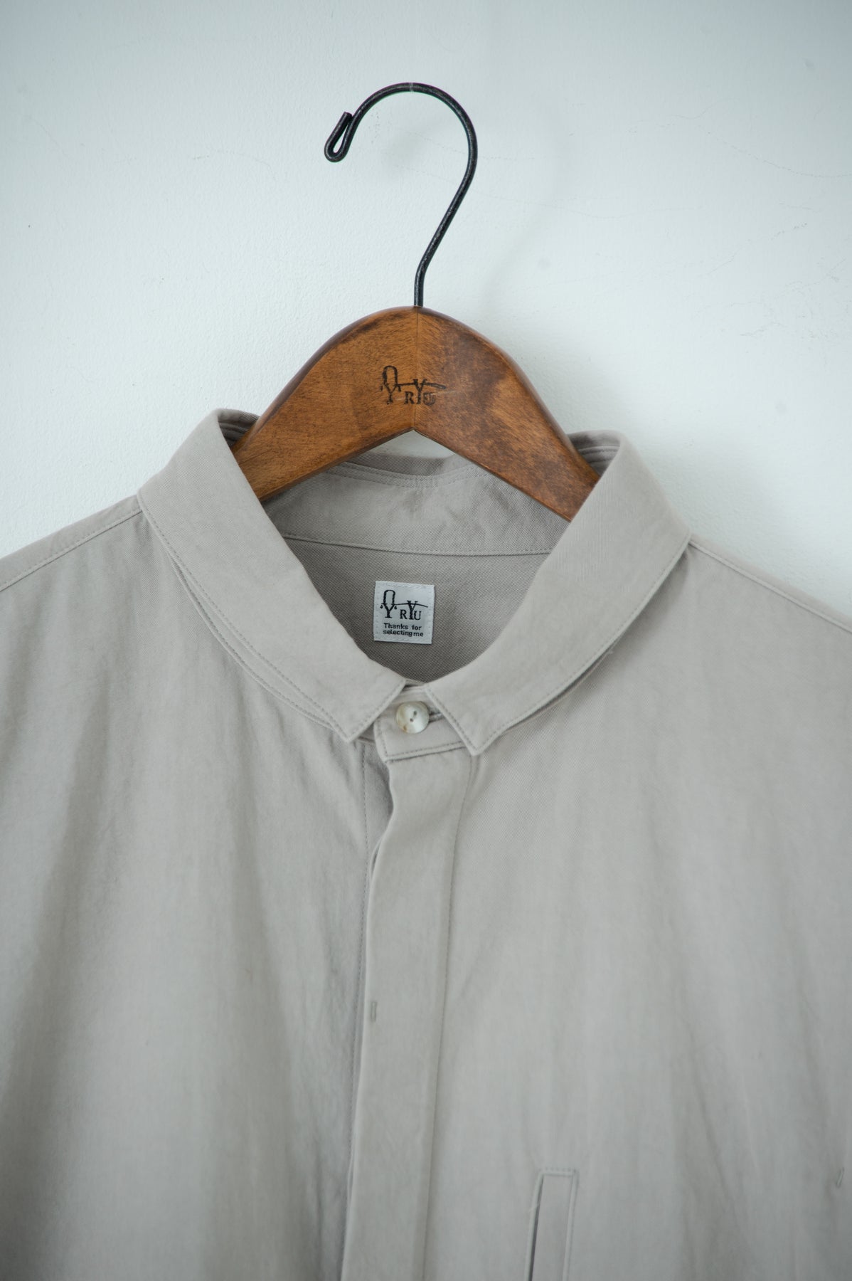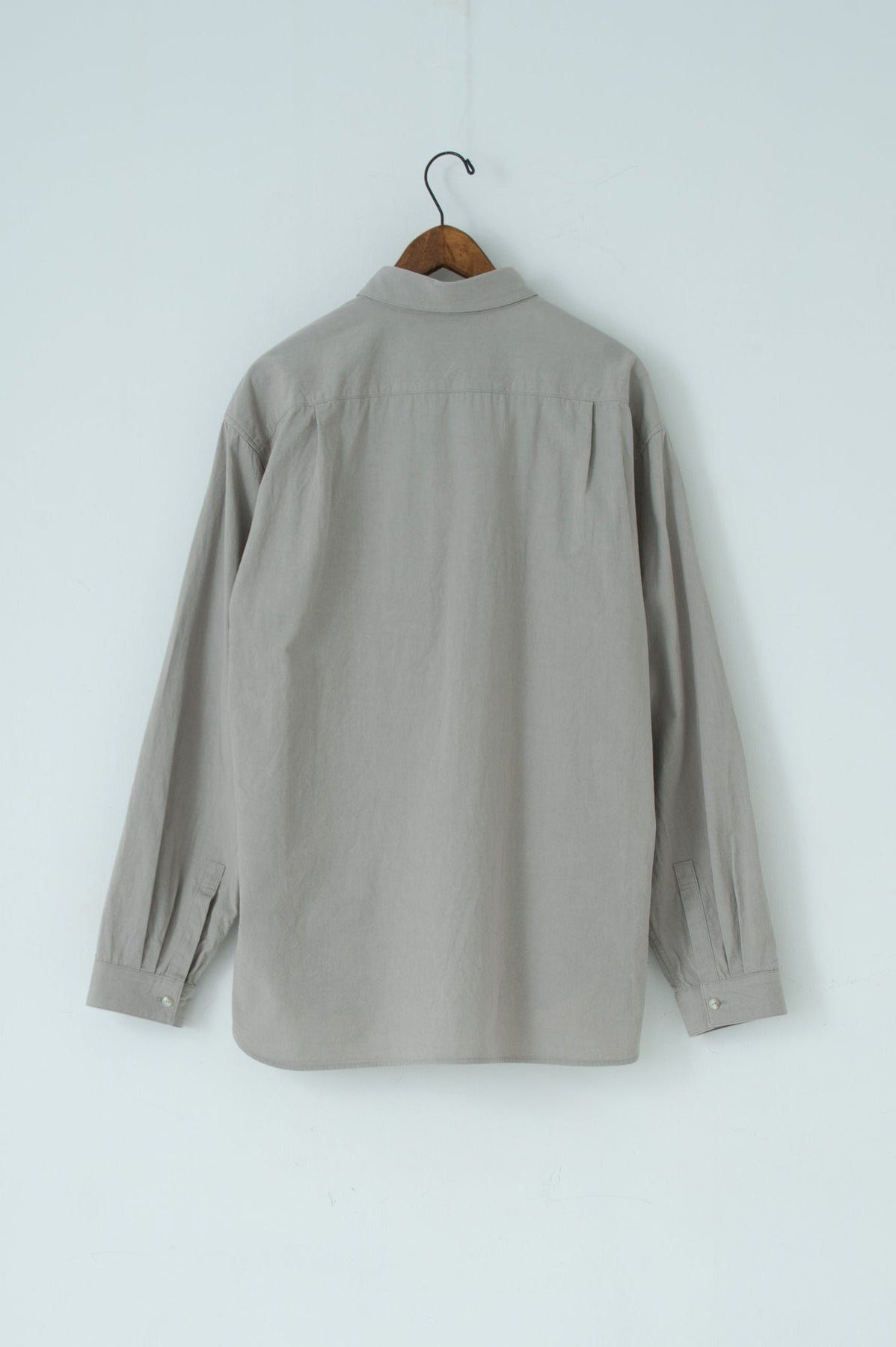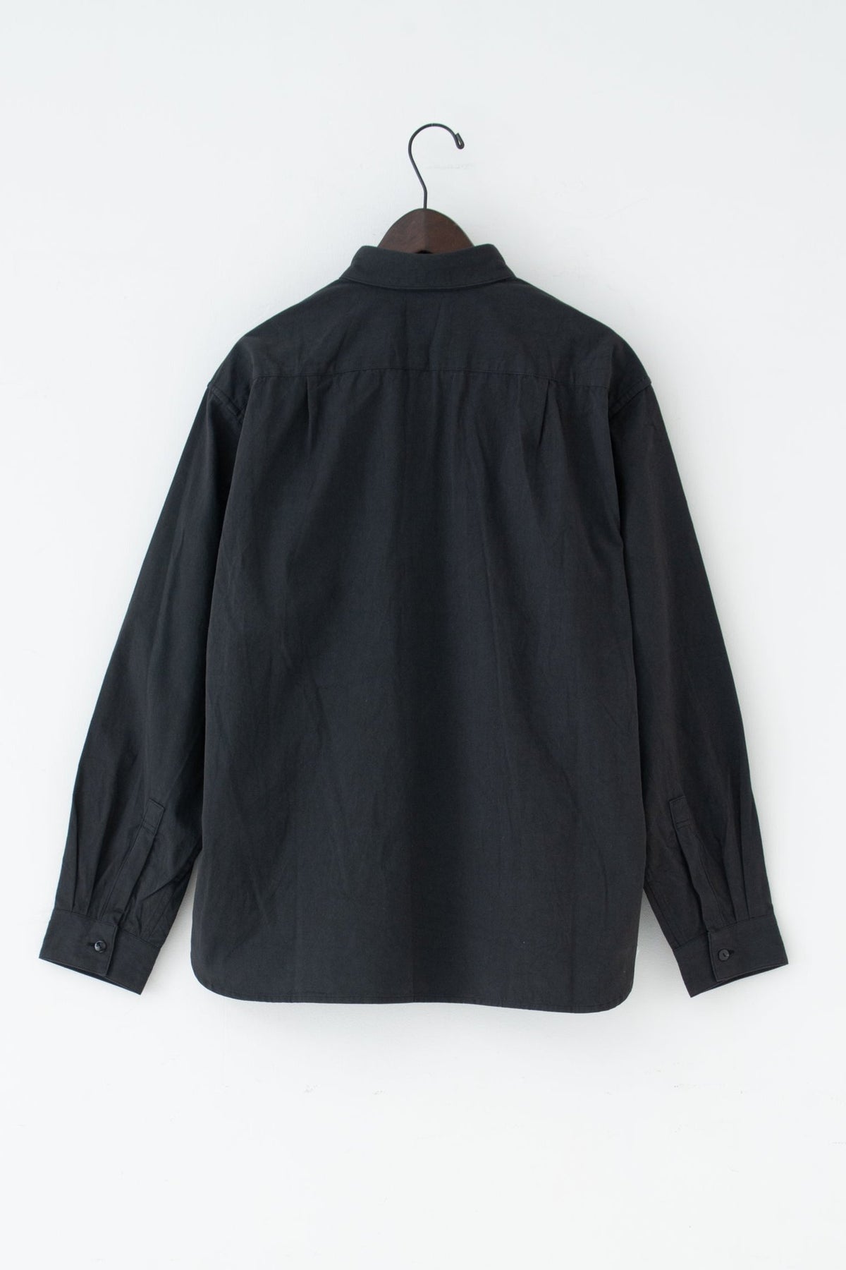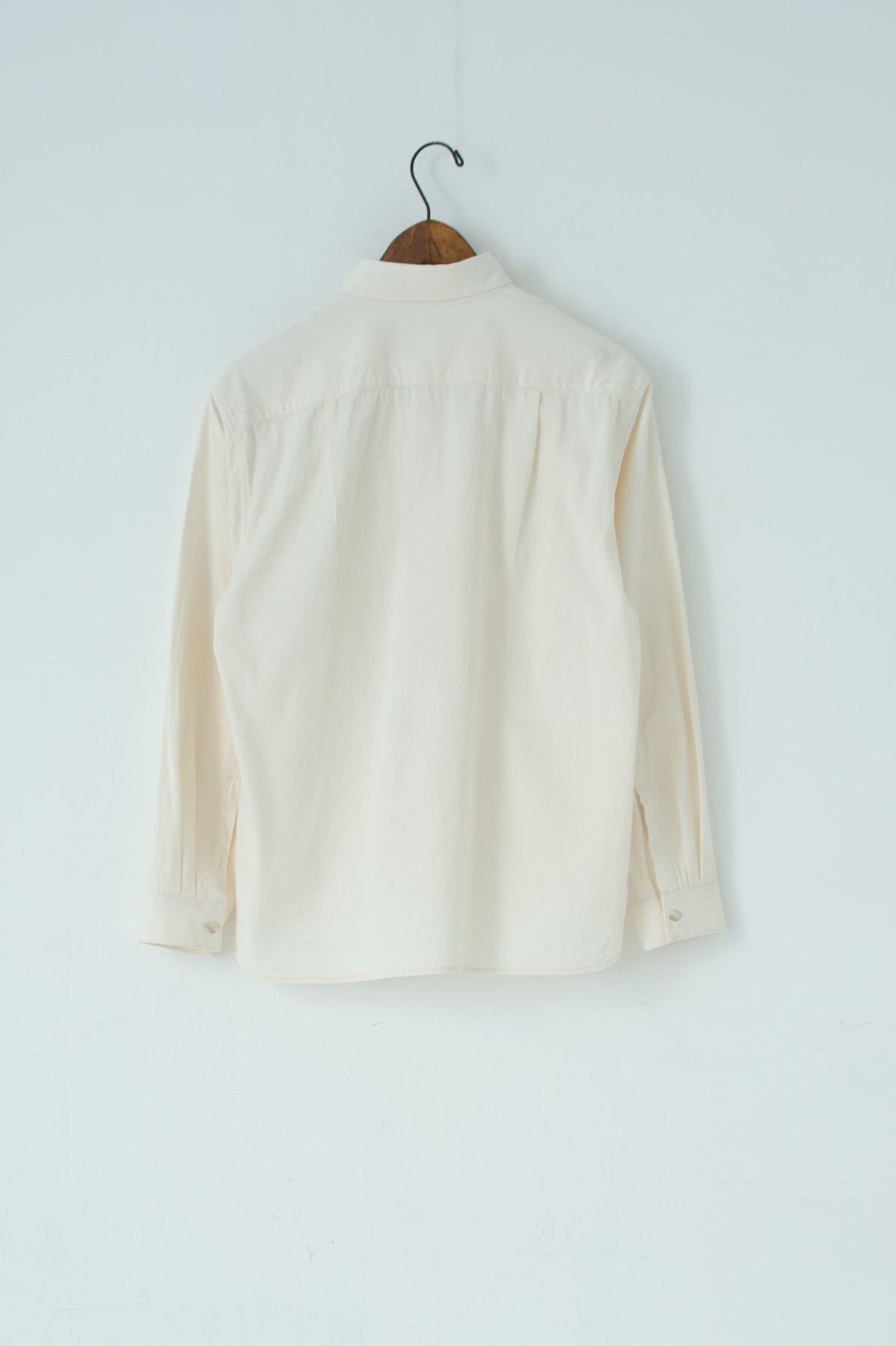 スクエアなちび襟が特徴のシャツは隠しスナップにより、ボタンダウンになっています。襟が浮く事もなく、雰 囲 気通りにミニマルな装いを保ってくれます。