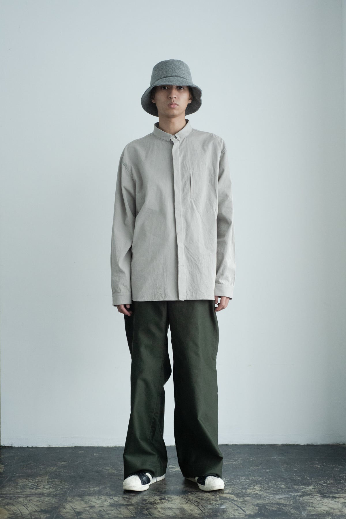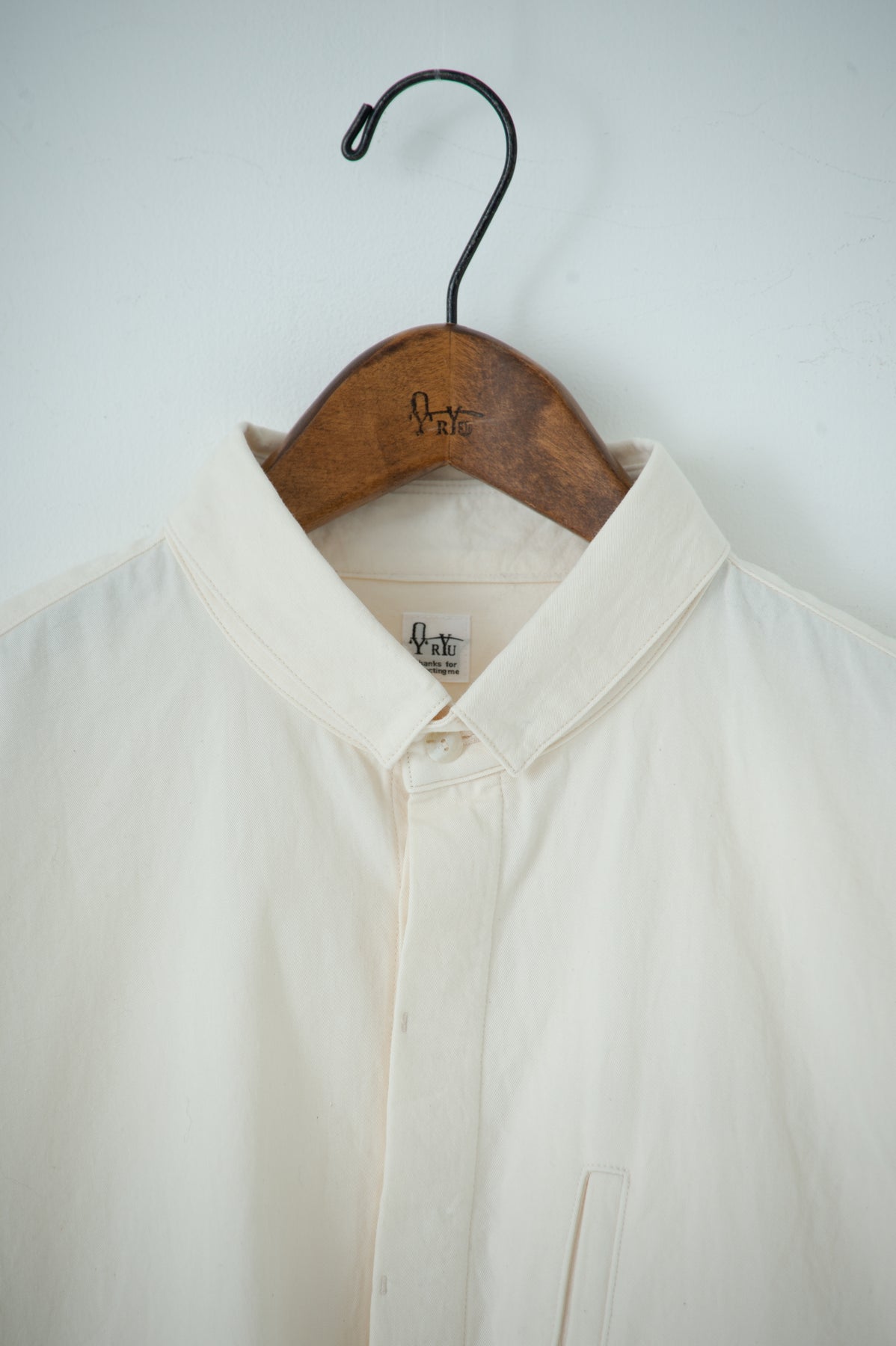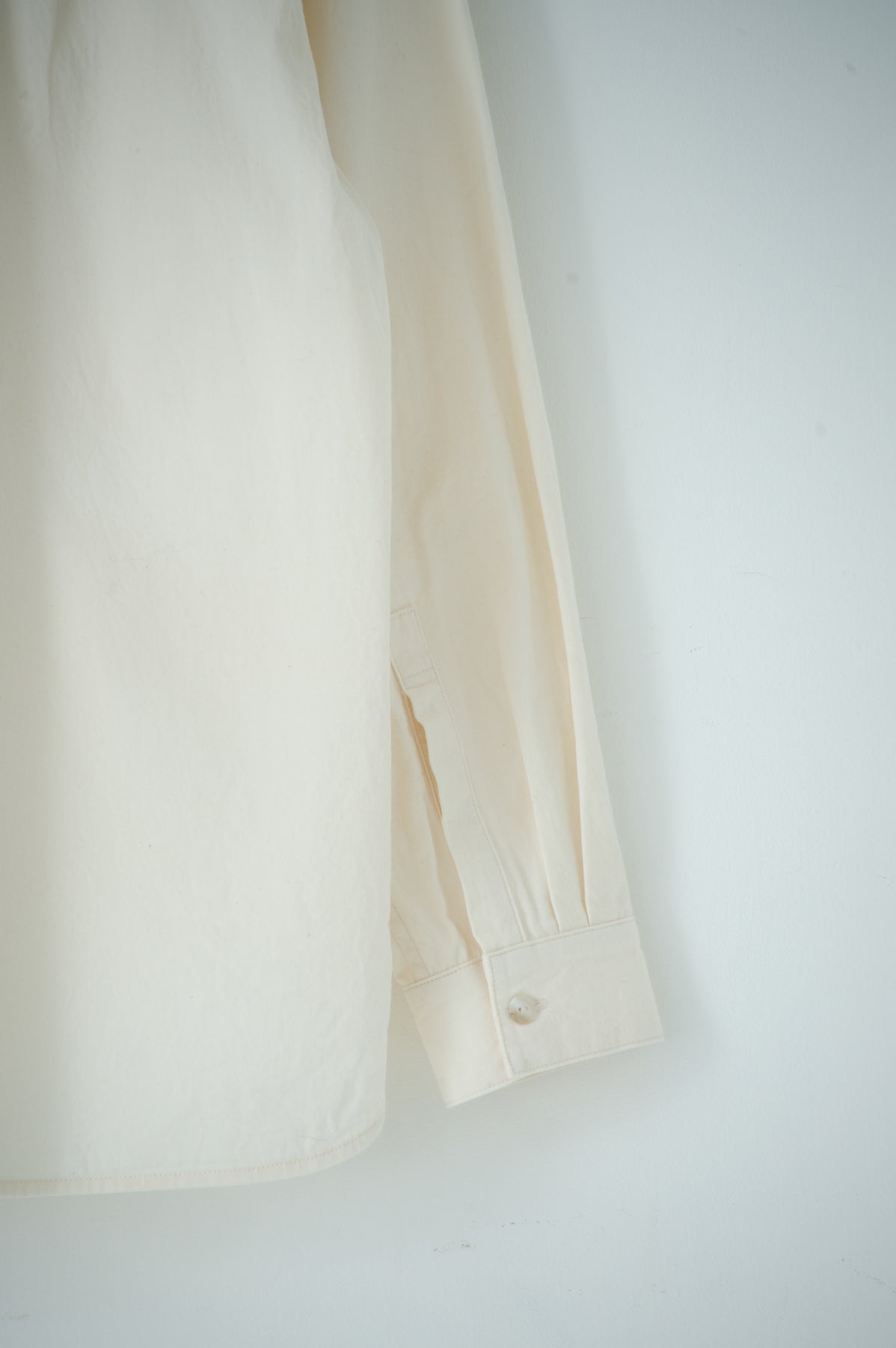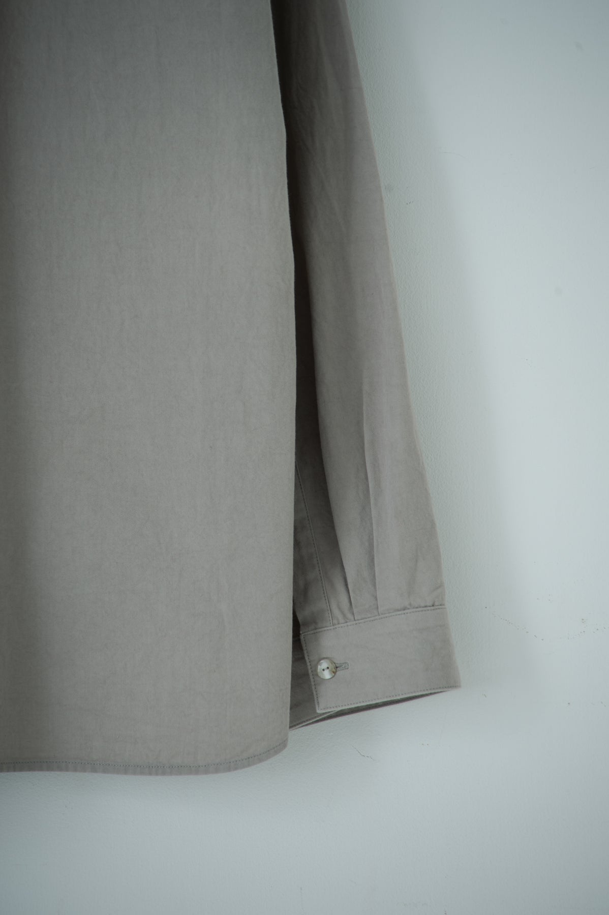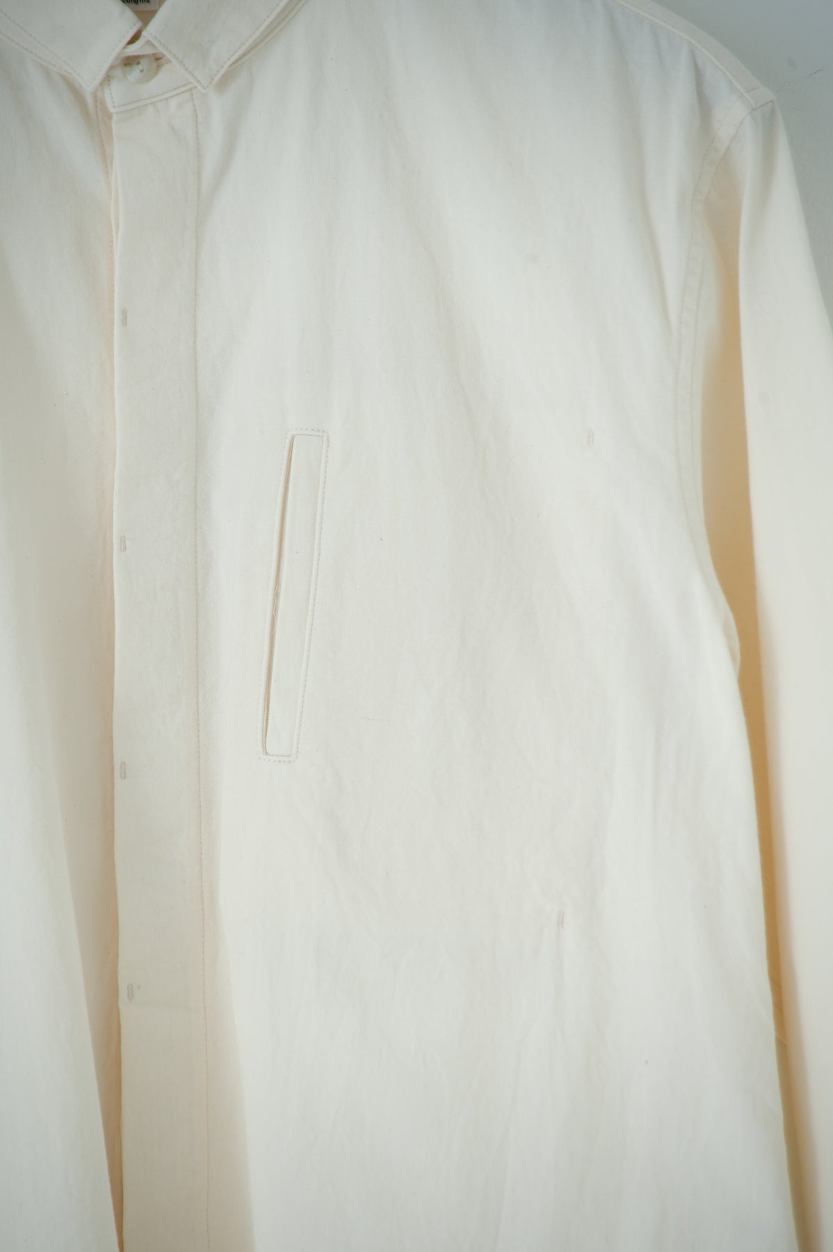 スクエアなちび襟が特徴のシャツは隠しスナップにより、ボタンダウンになっています。襟が浮く事もなく、雰 囲 気通りにミニマルな装いを保ってくれます。