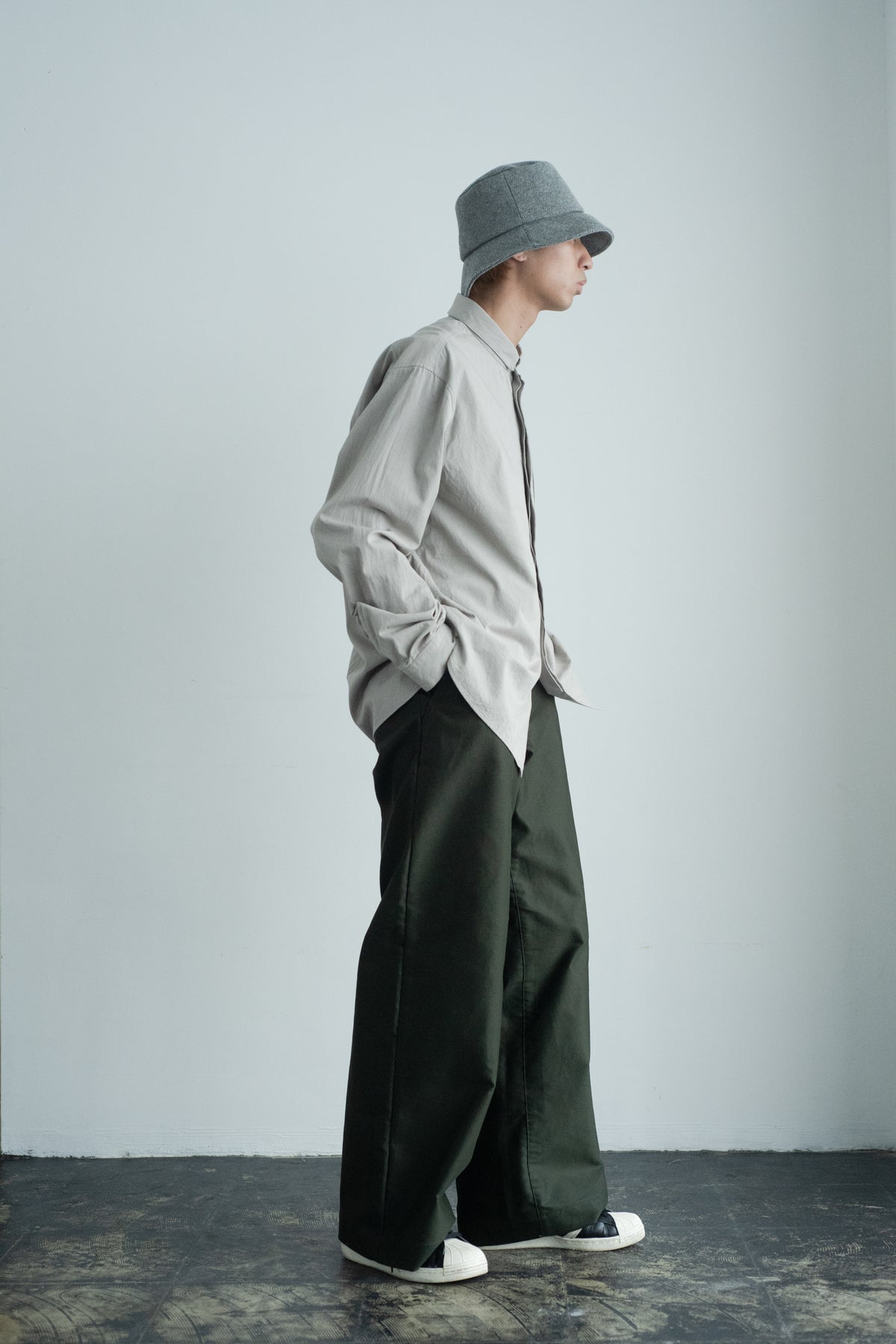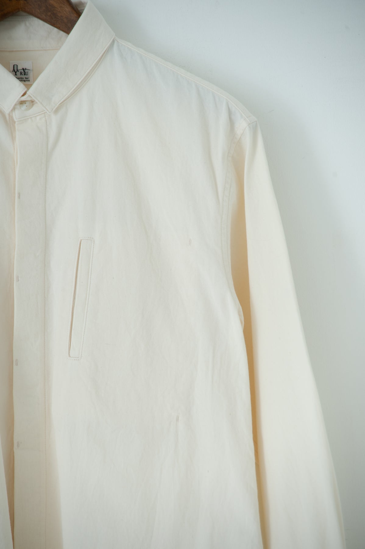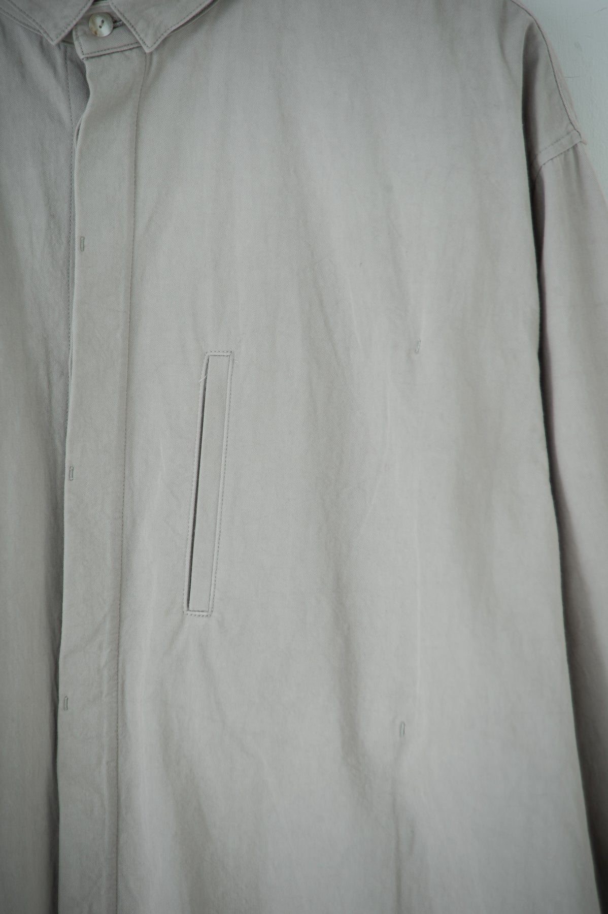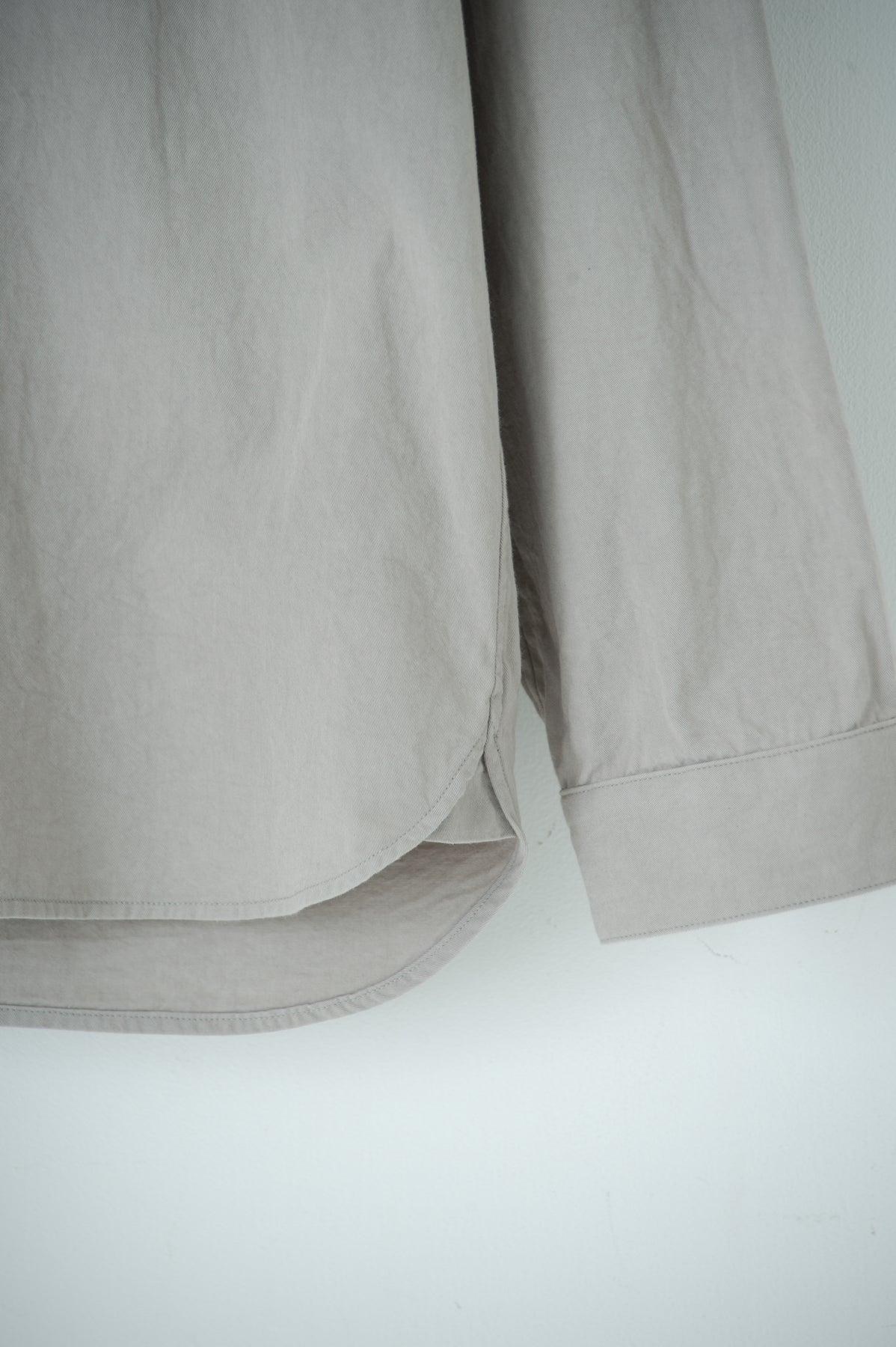 スクエアなちび襟が特徴のシャツは隠しスナップにより、ボタンダウンになっています。襟が浮く事もなく、雰 囲 気通りにミニマルな装いを保ってくれます。