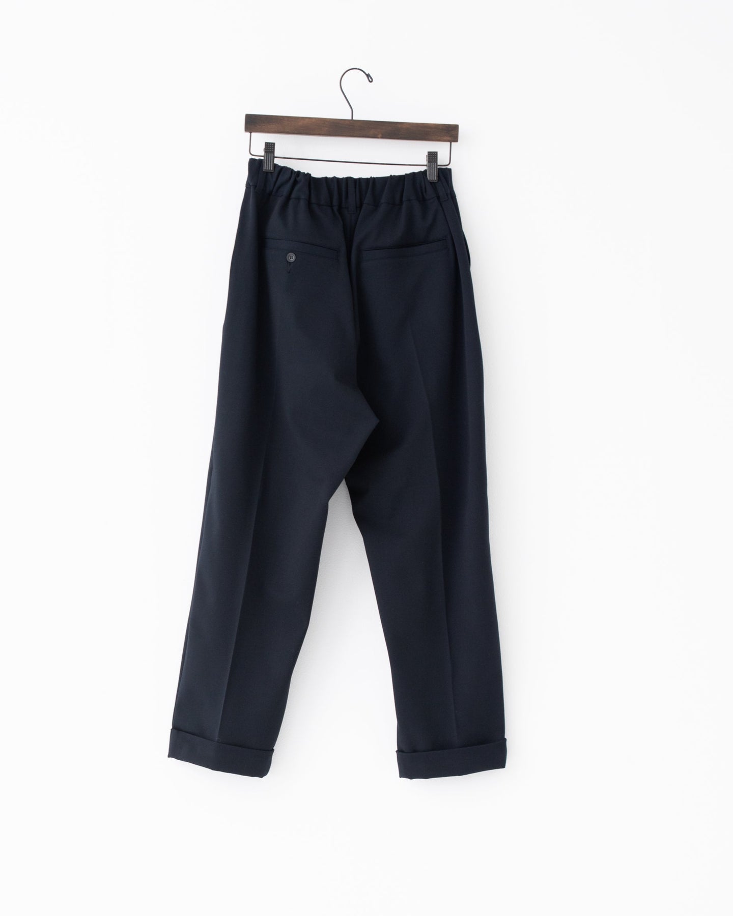 オーバーサイズシルエットで形造ることにより、素材感も相まって上質なスラックスへと仕上がりました。