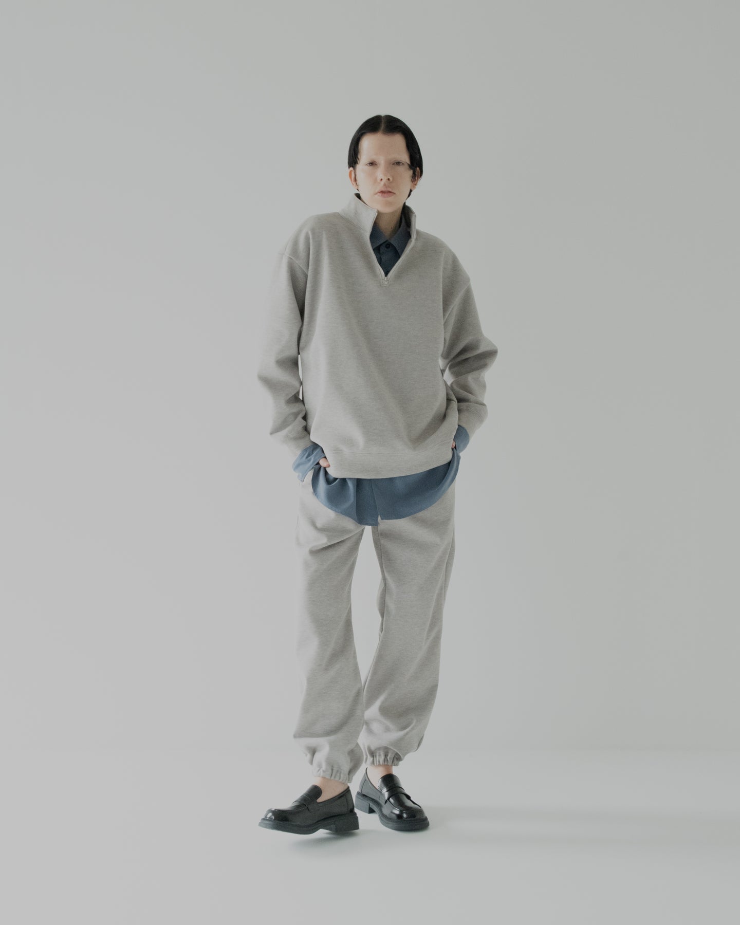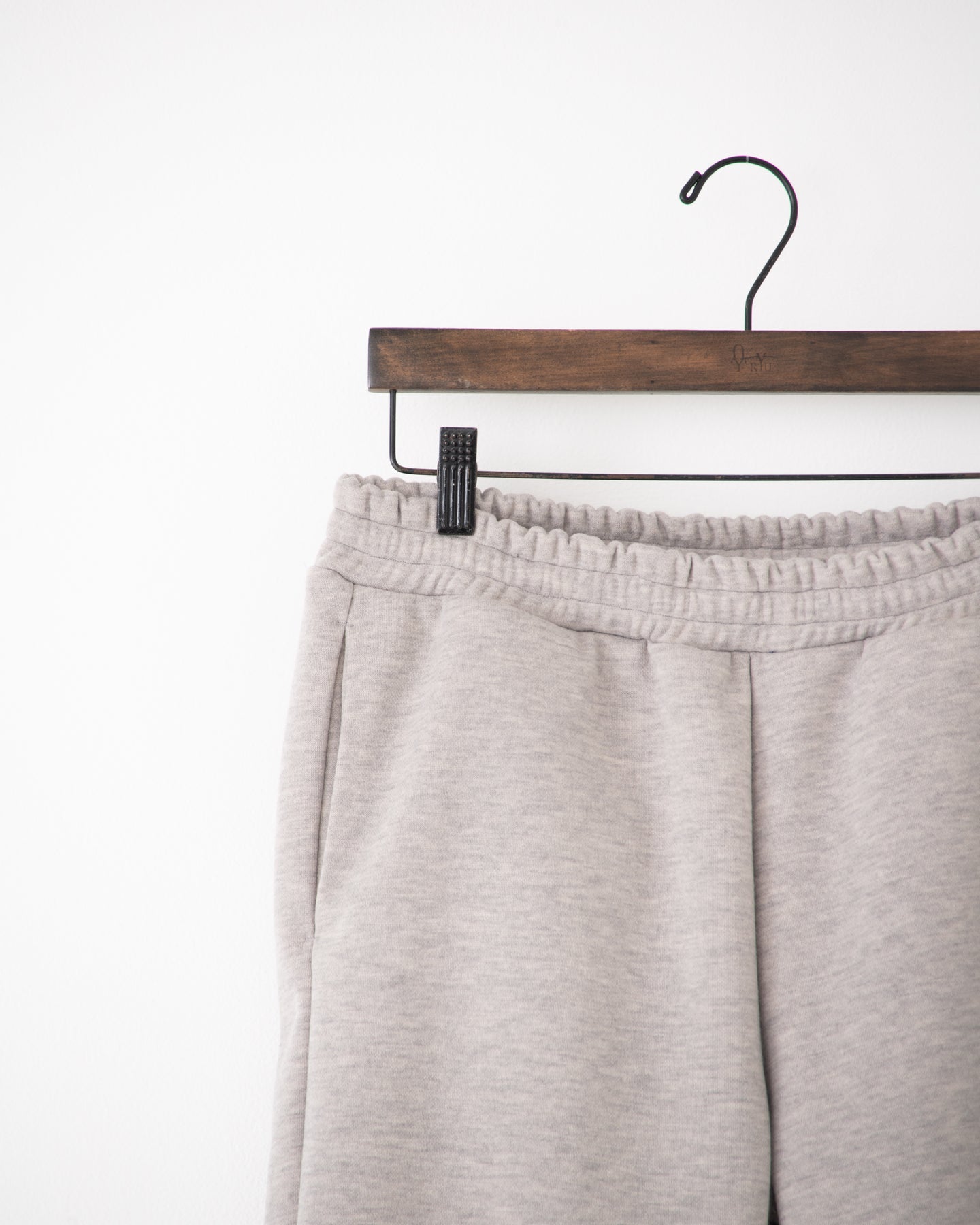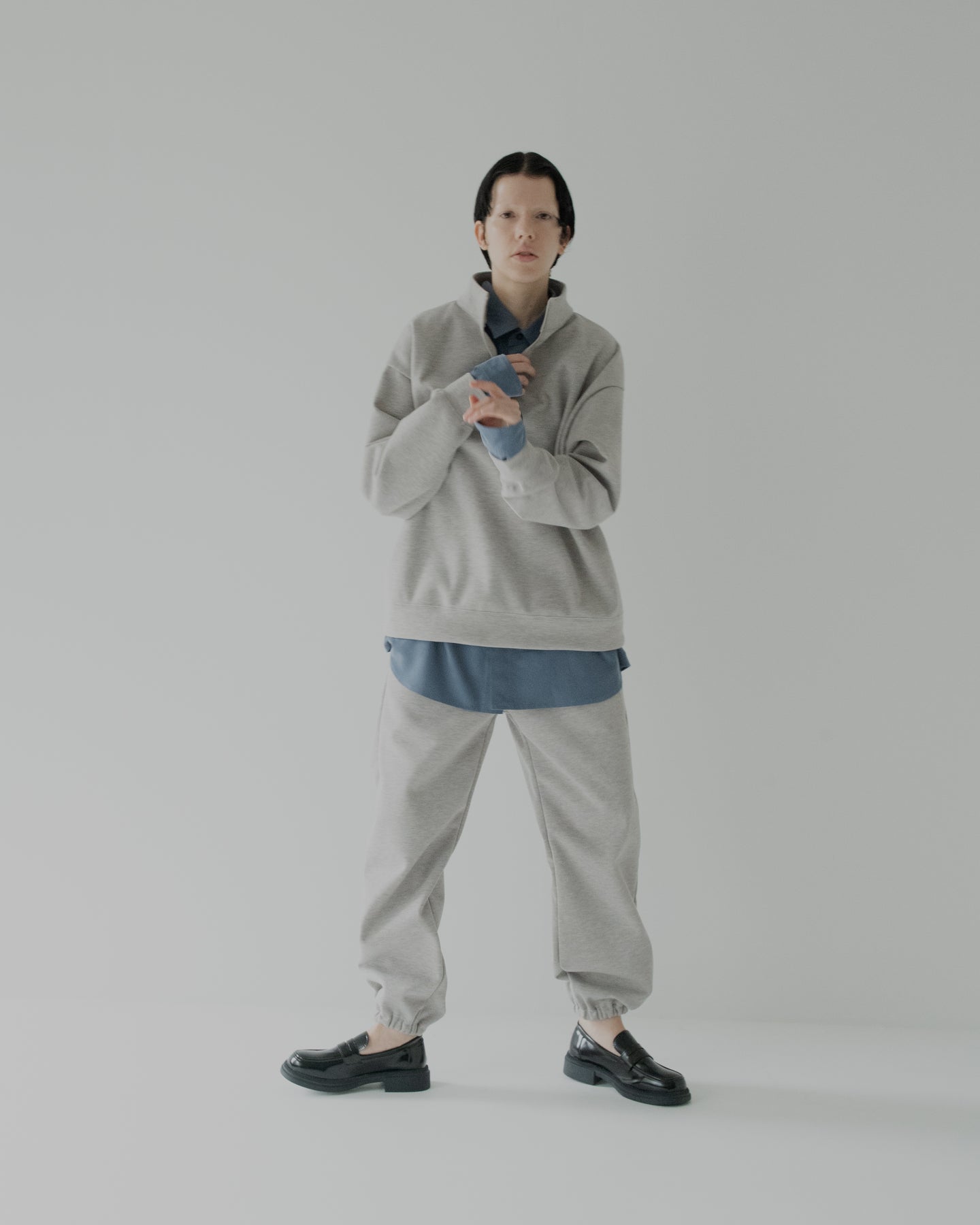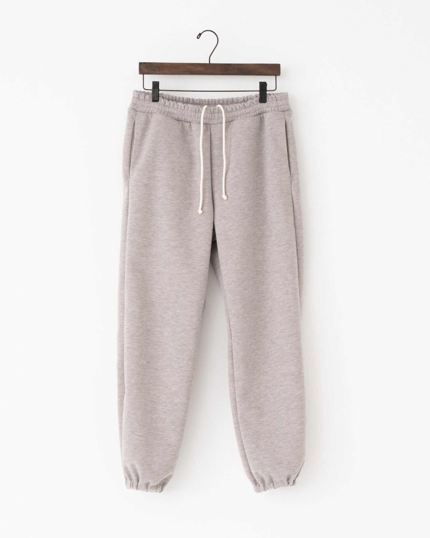 裾ゴムのテンションは少し強めに設定し、クッションをしっかりとったスウェットスタイルのボトムスになります。