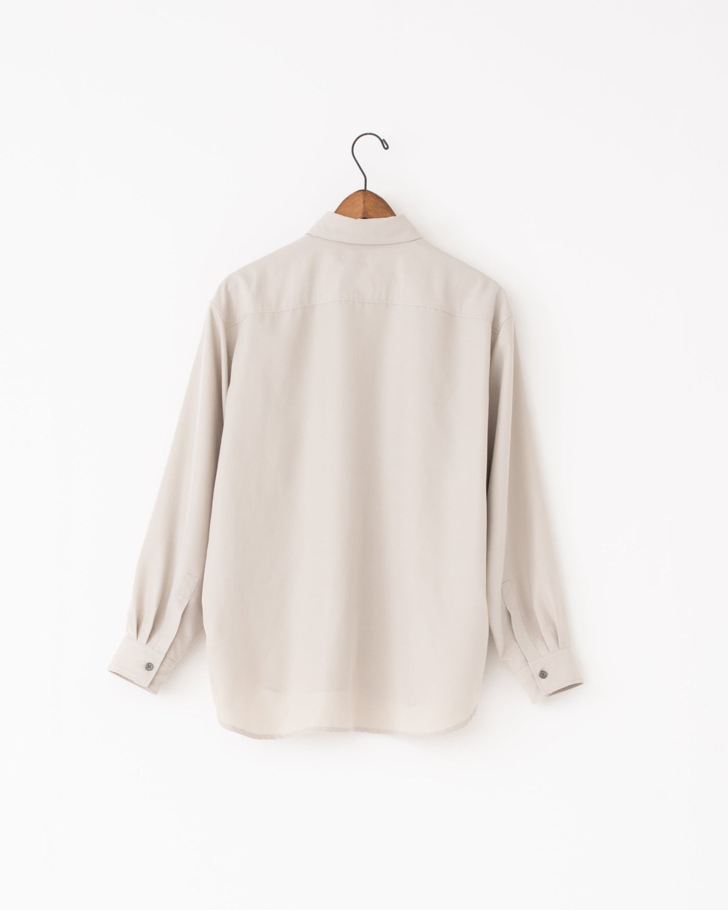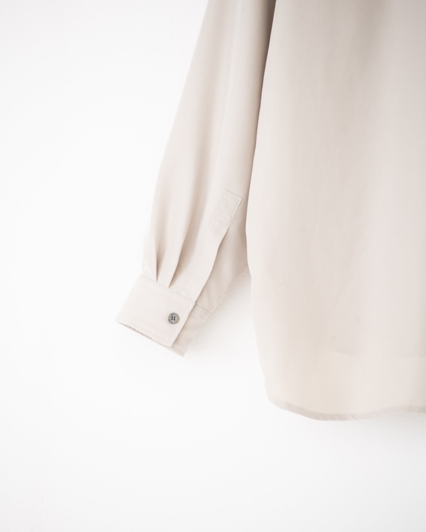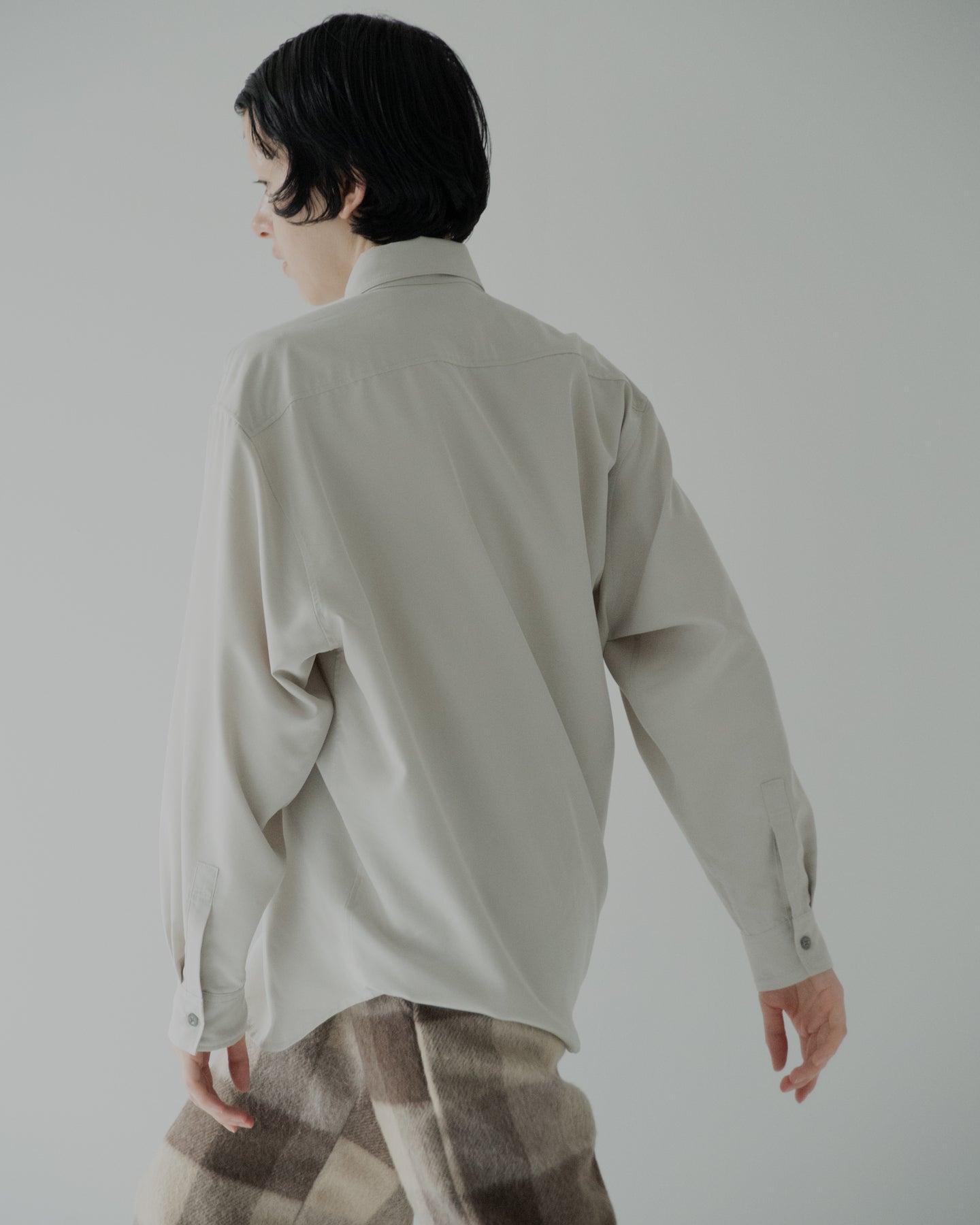 デザイナー私物のシルクシャツを原型に、生地の落ち感を活かした分量感がポイントの少しオーバーサイズなシャツになります。