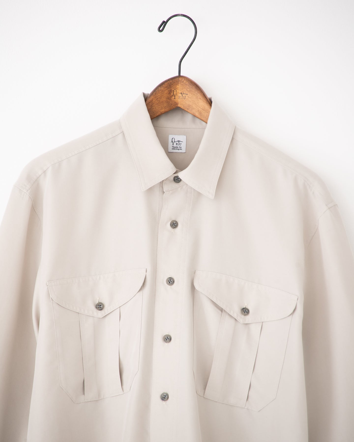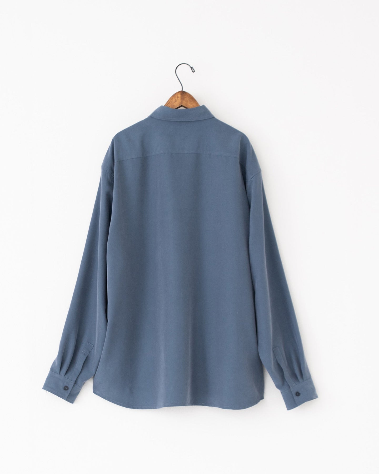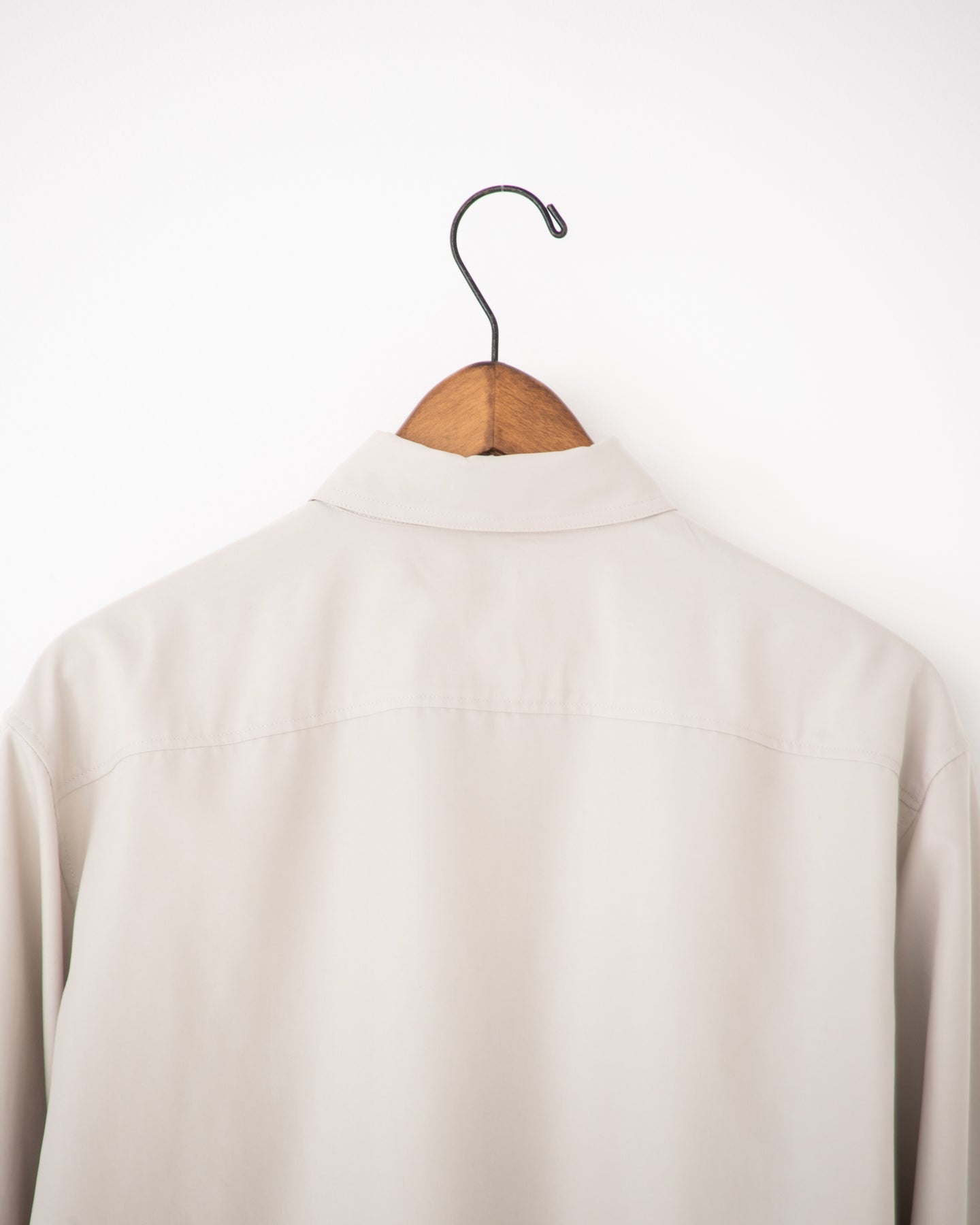 デザイナー私物のシルクシャツを原型に、生地の落ち感を活かした分量感がポイントの少しオーバーサイズなシャツになります。