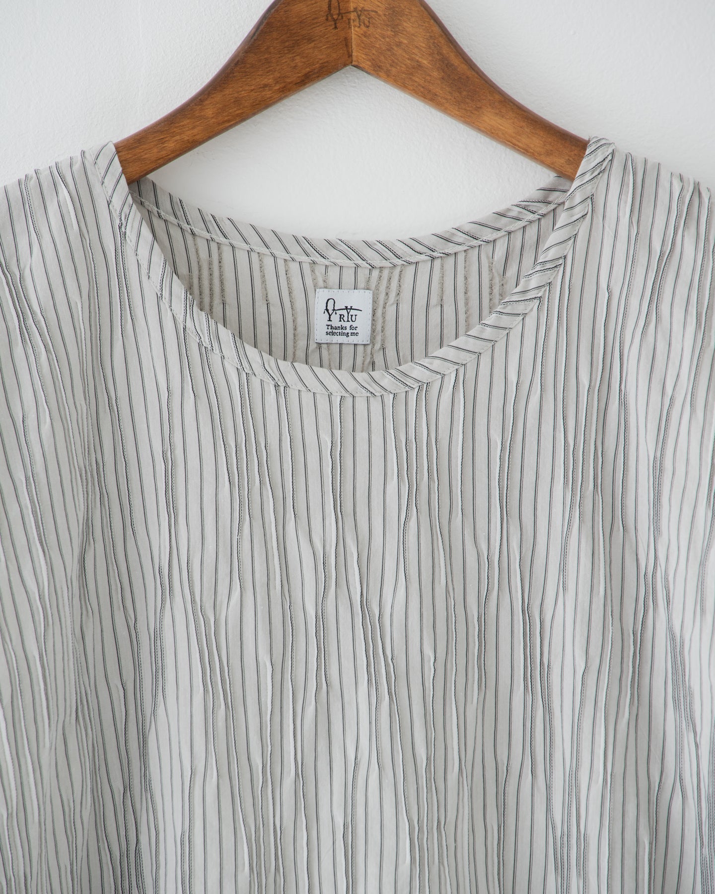 タック組織が生み出す陰影が光の加減で表情を変え、上品かつモードな印象を演出します。