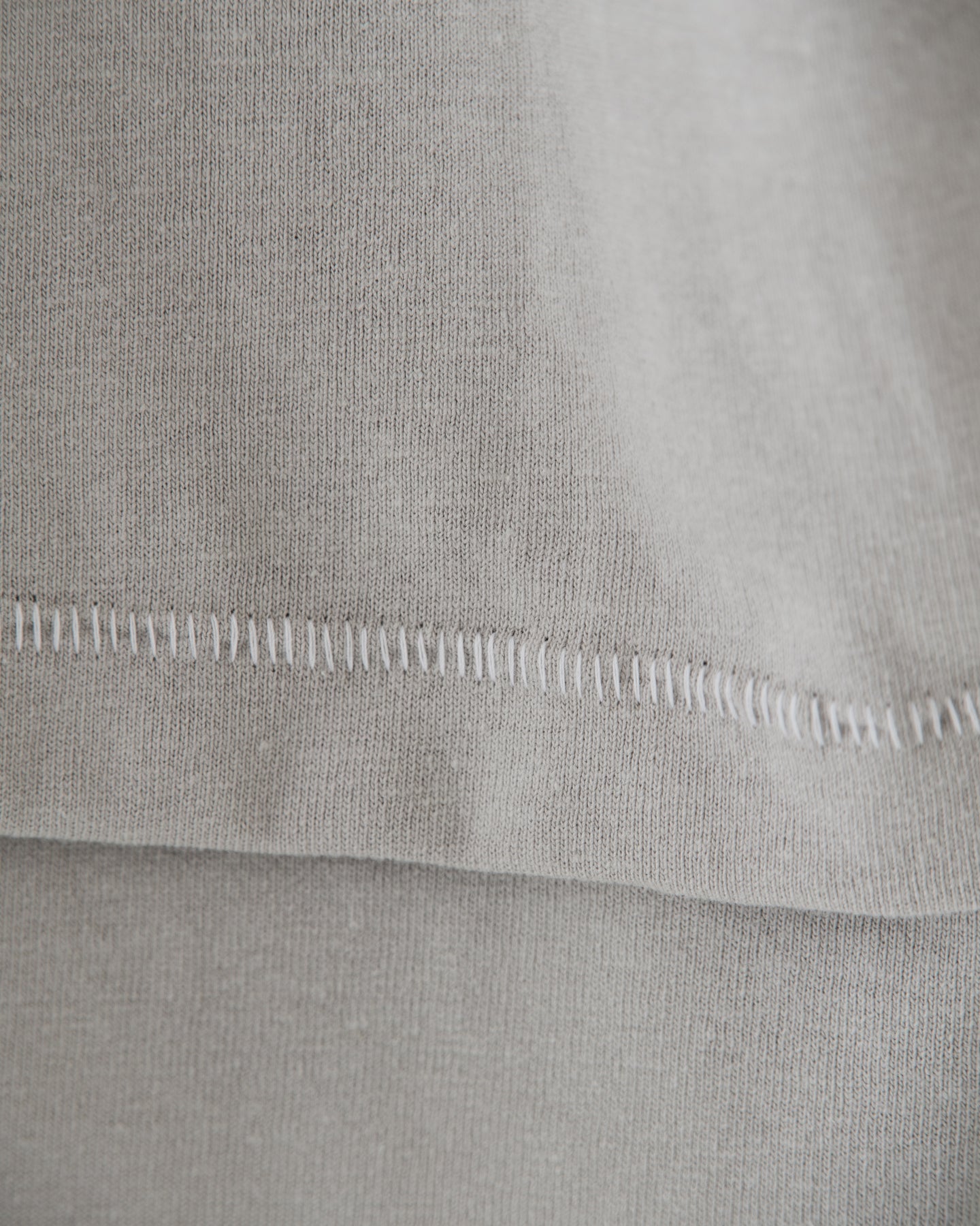 ラフィー天竺は、リサイクルコットンをブレンドしたムラ糸で編み立てられた天竺生地。