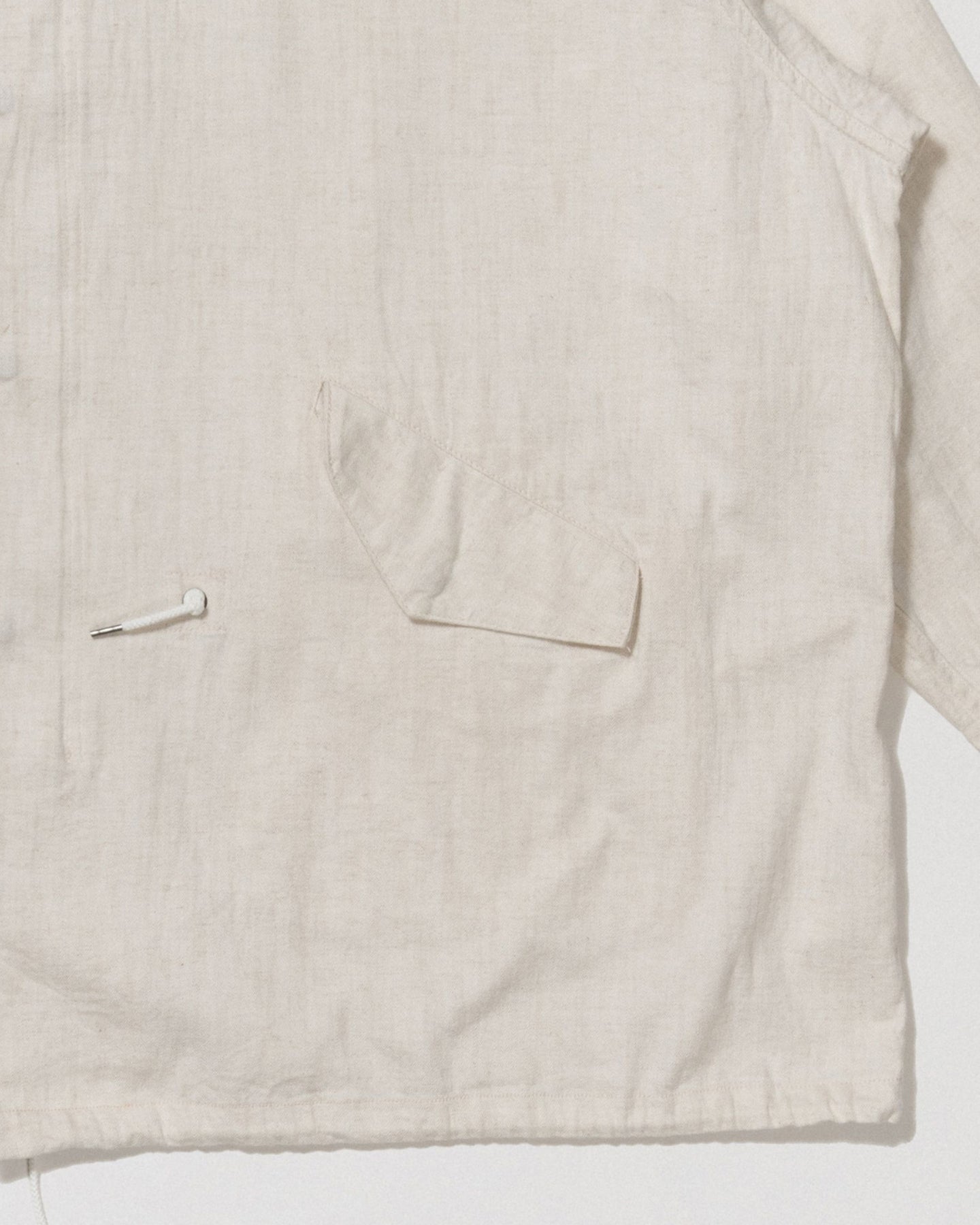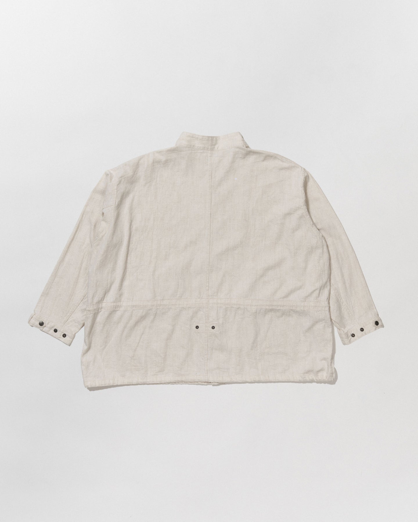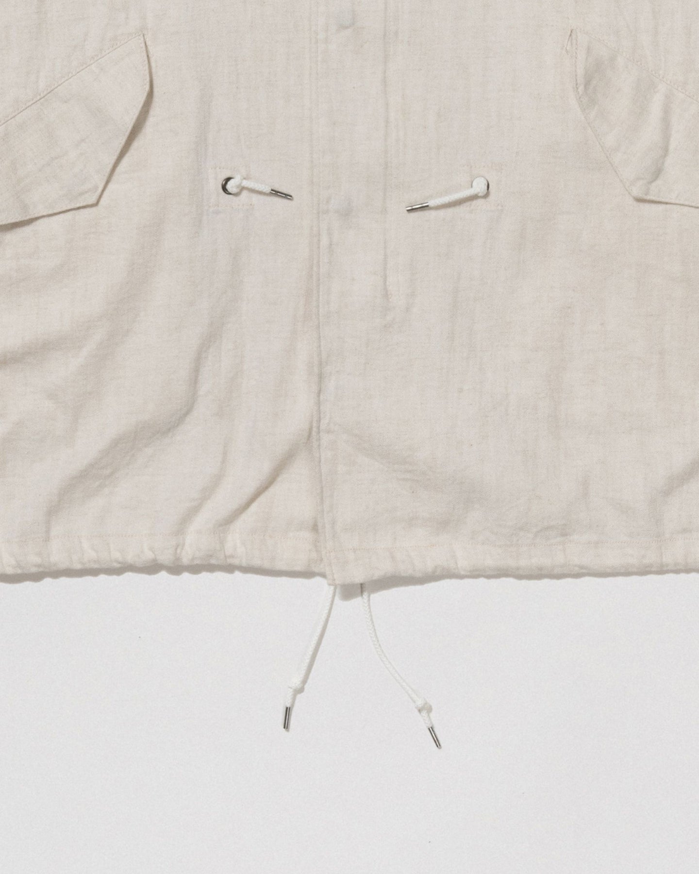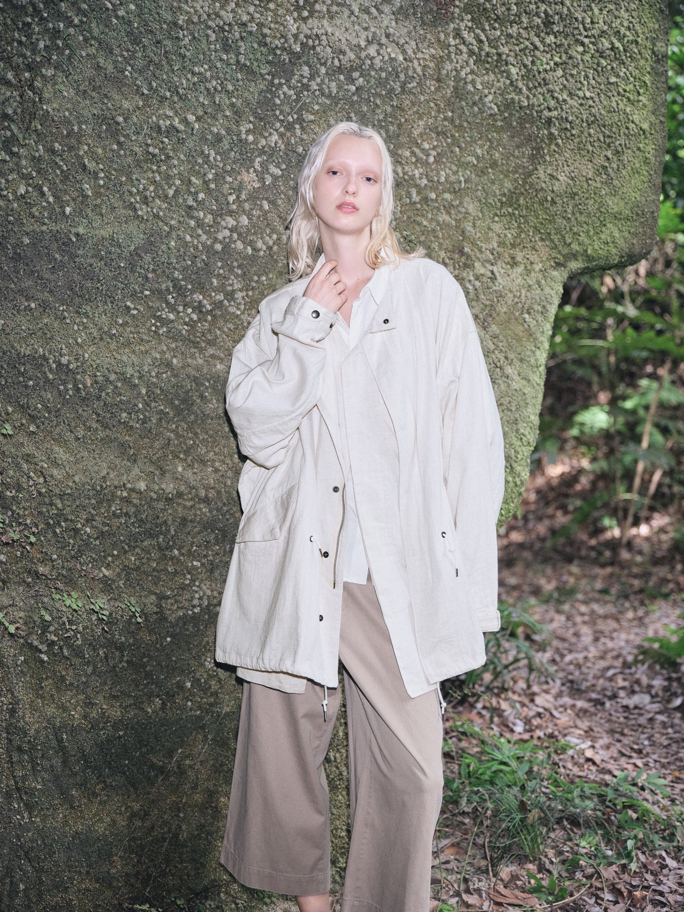 ミリタリーアイテムのM-65アウターをコットンリネン素材で提案する事により、カジュアルではなく大人仕様な雰囲気で楽しんでいただけるスタイルに仕上げました。