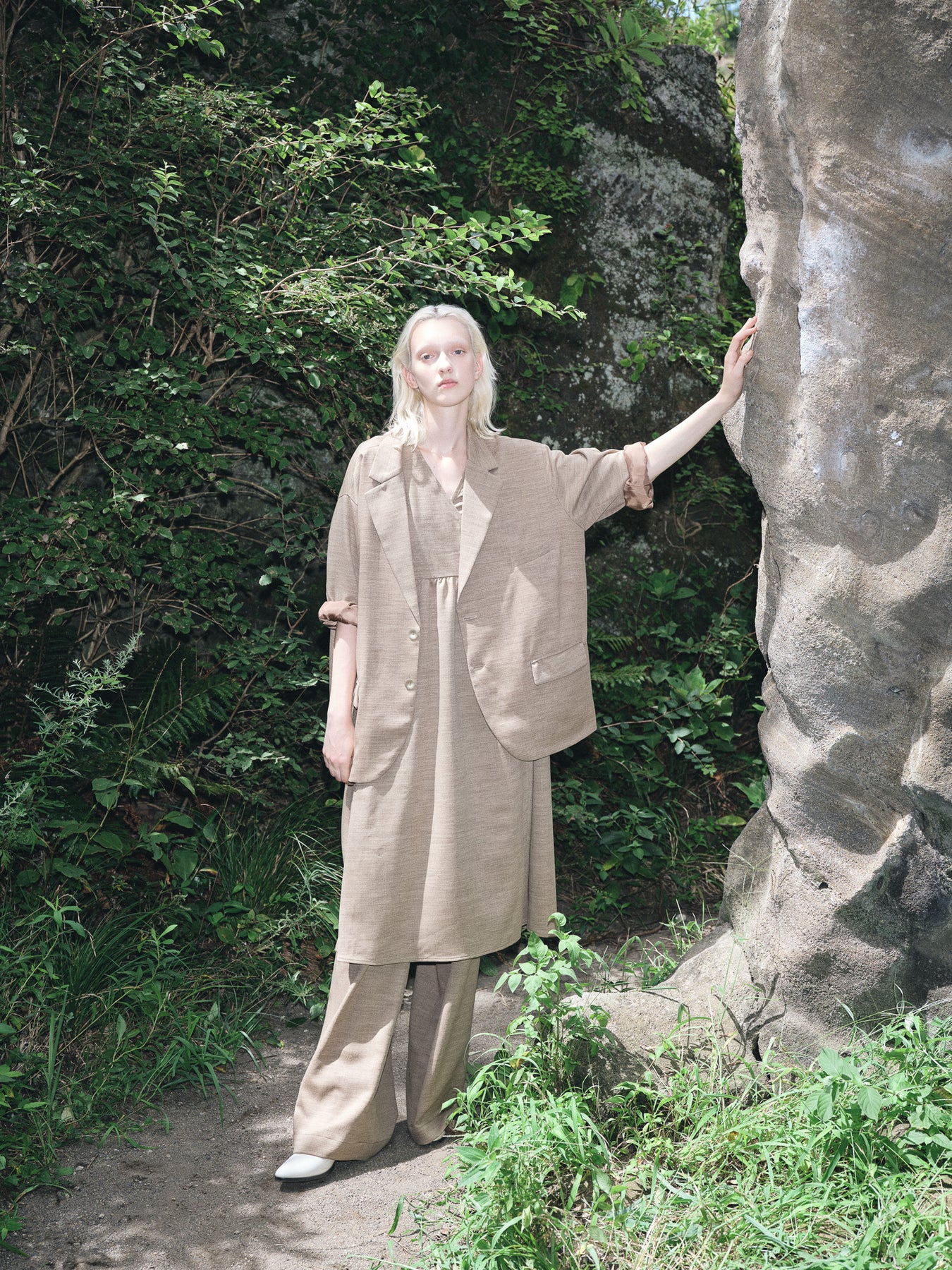 麻のようなナチュラル感と、ドライな風合いのリネンライクファブリック。