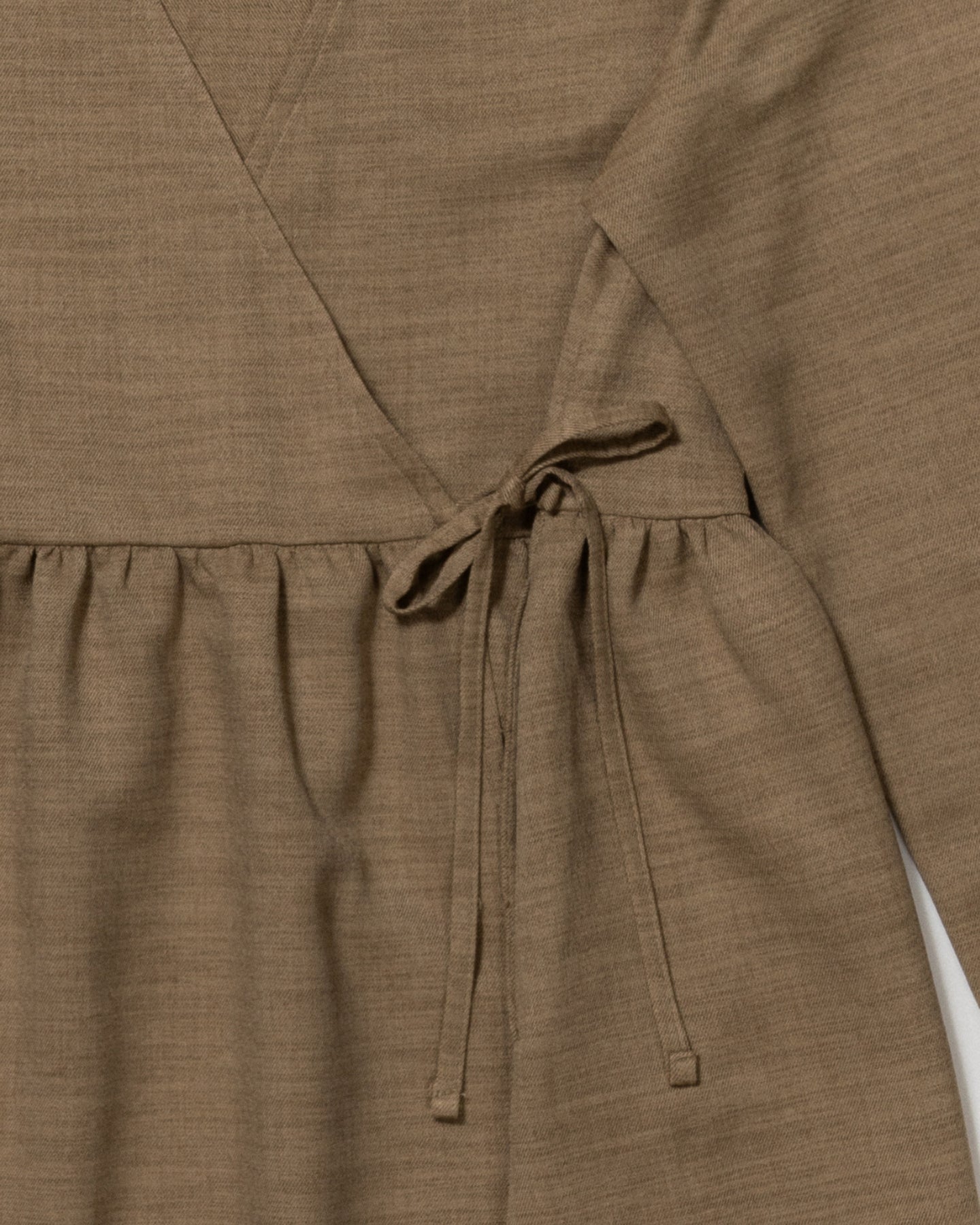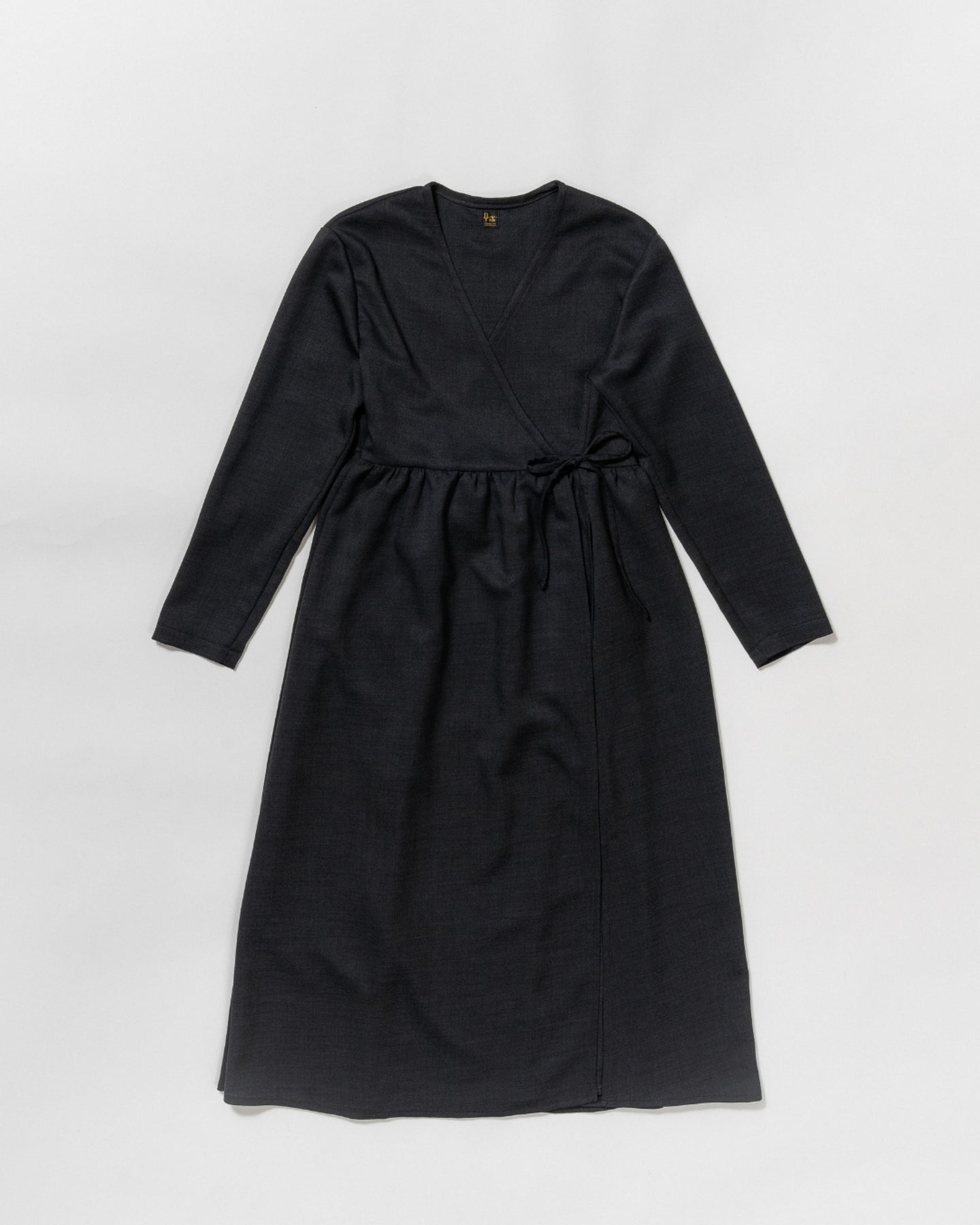 同素材のコードにより打ち合わせを留めるスタイルですので体型に合わせて調整ができるのもポイントの一つです。