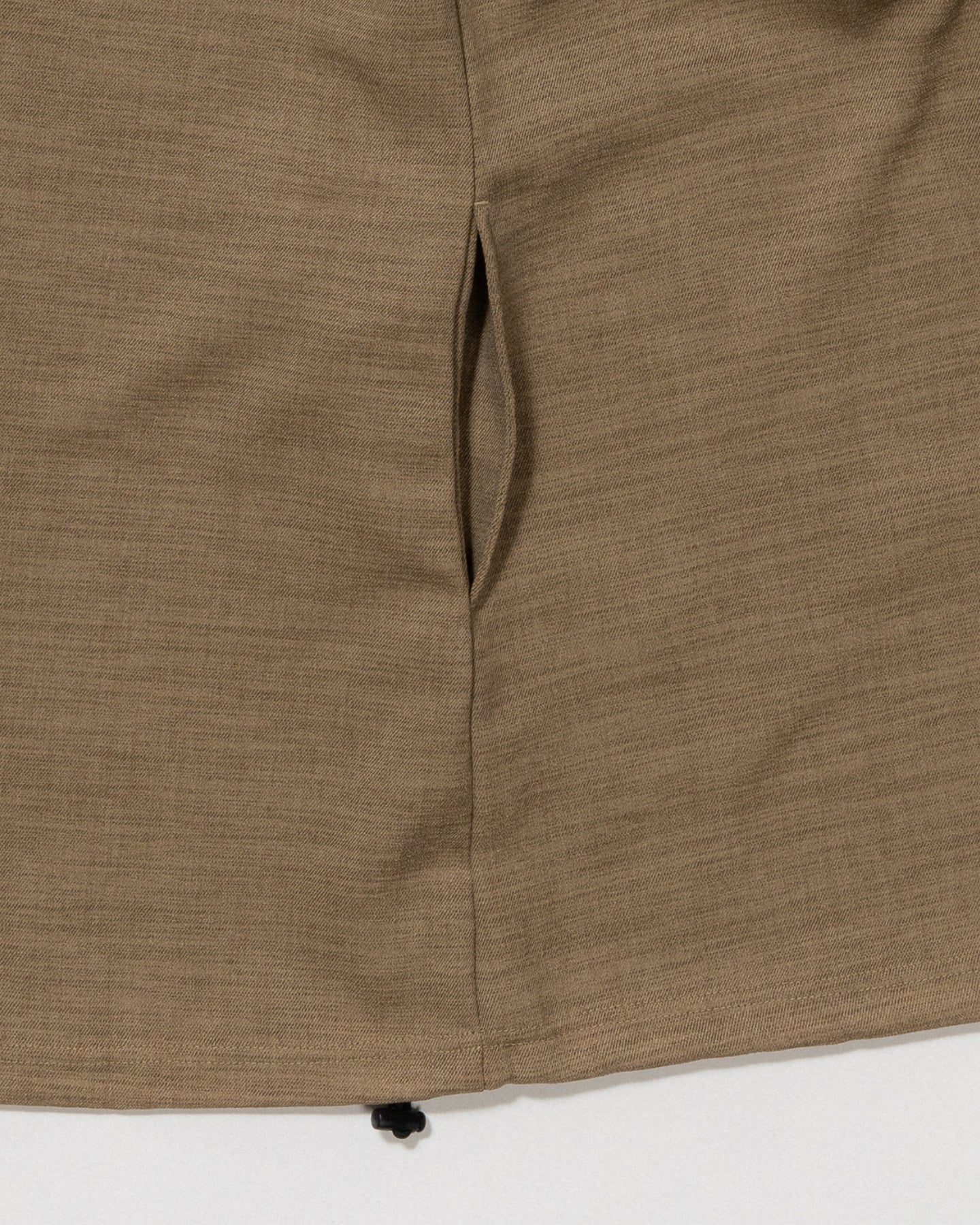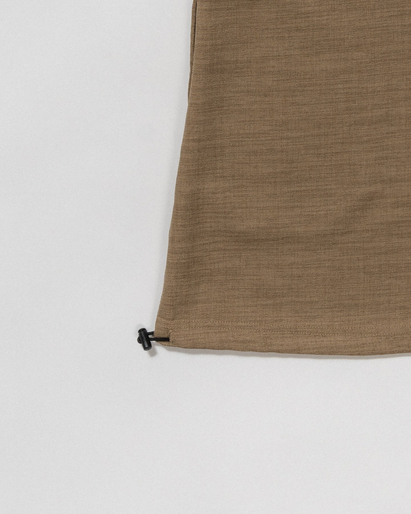 裾周りのドローコードにより着丈やシルエットのアレンジが可能で