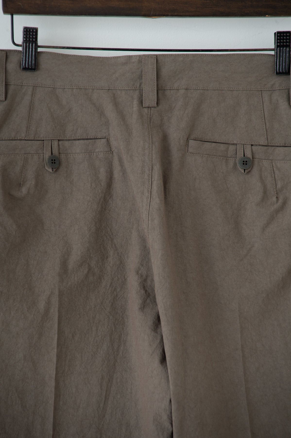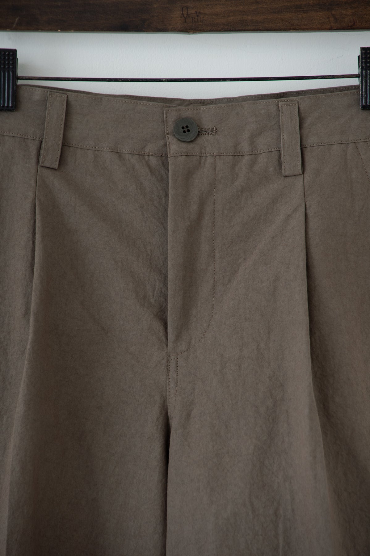 リラックス状態で精練・染色する事により粗野感のある風合いに仕上げたダンプ生地です。