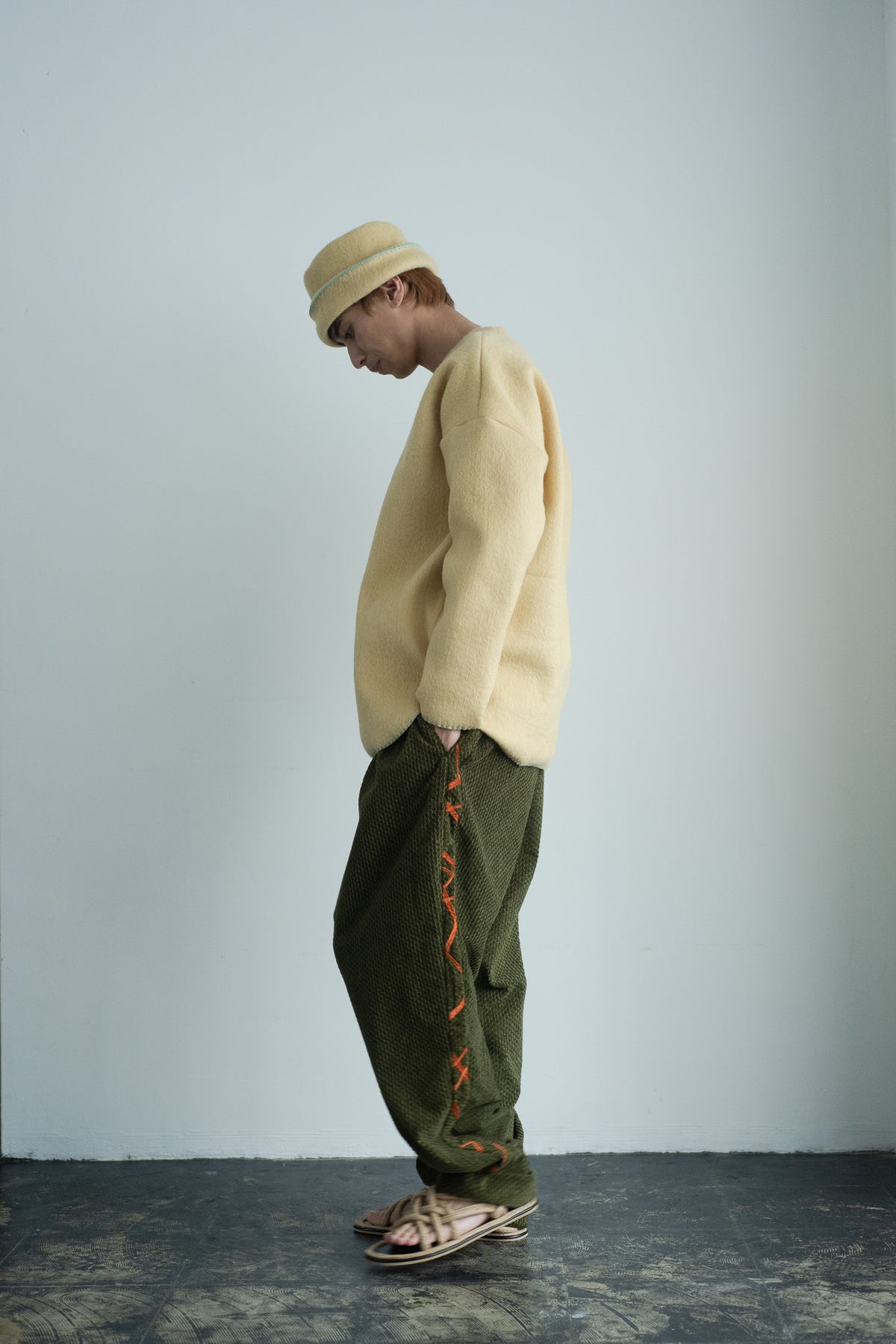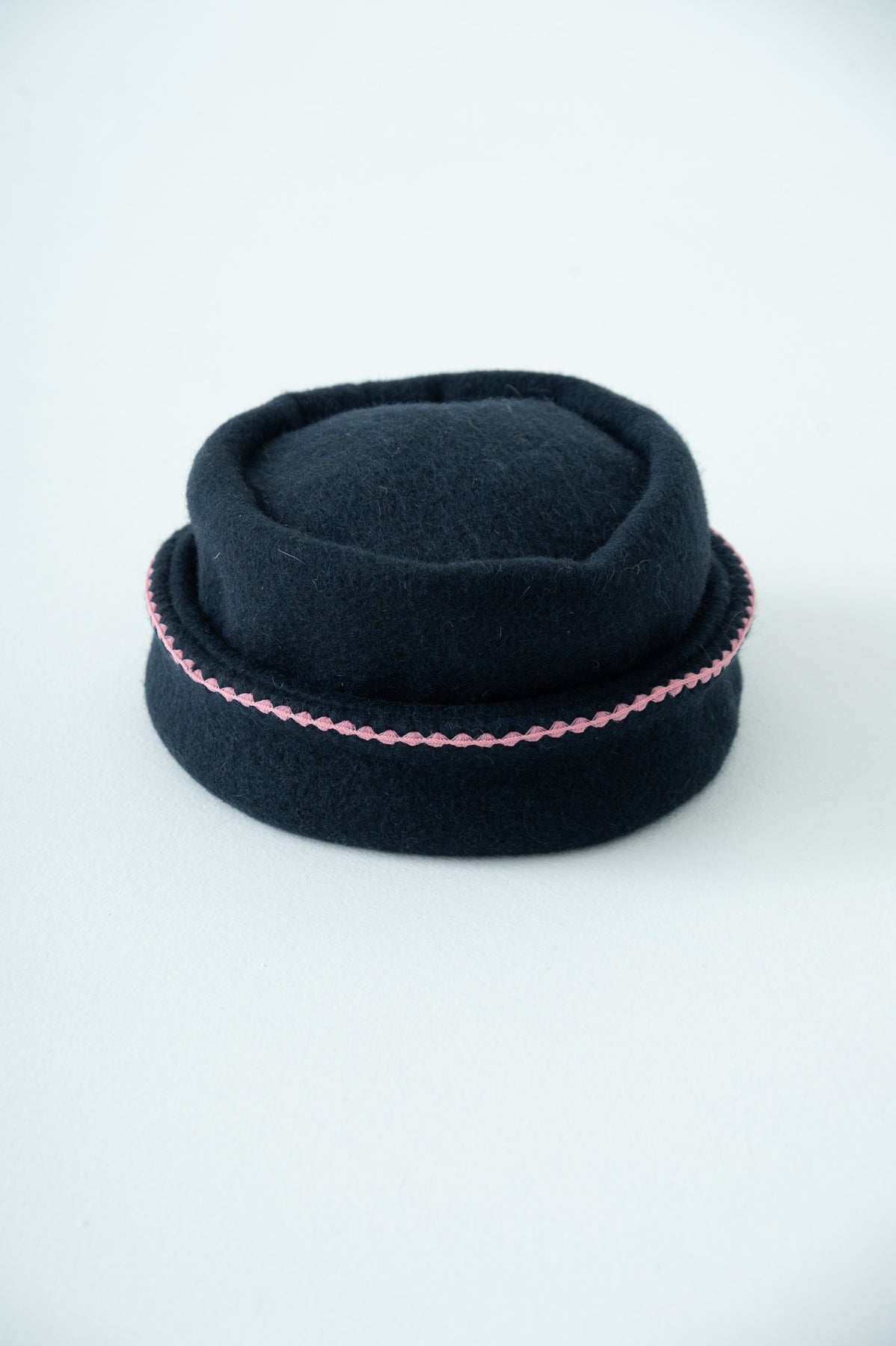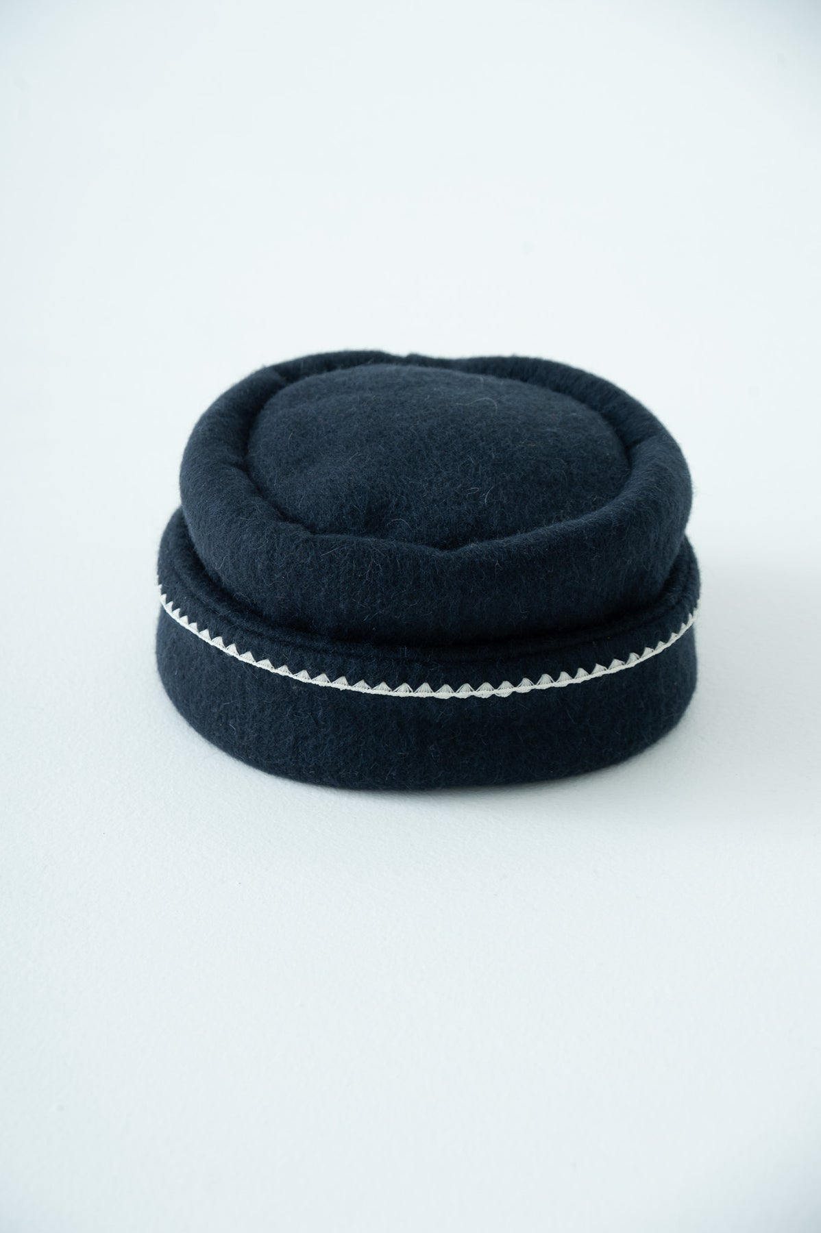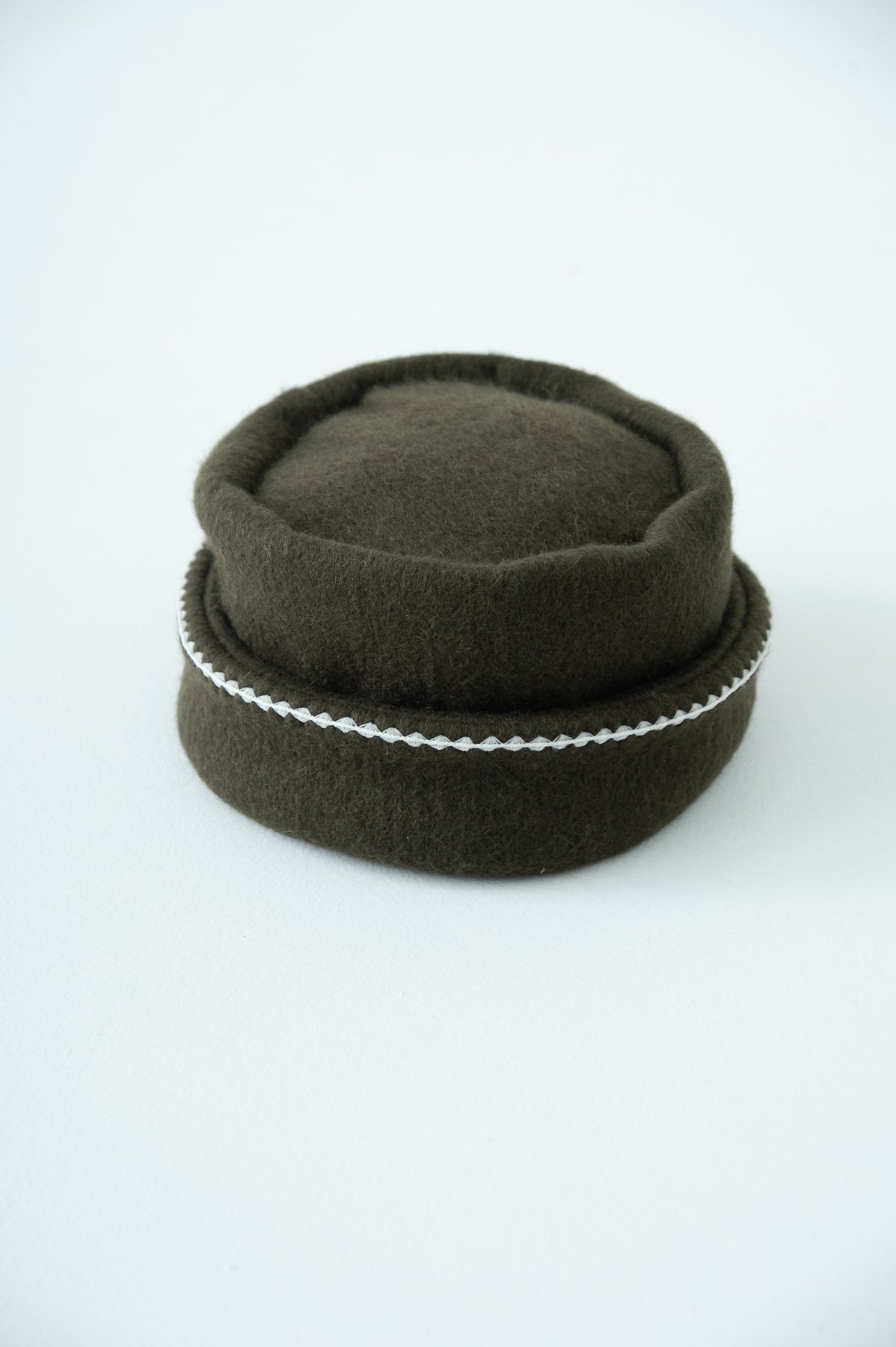 シーズンテーマとなっている「nomad」(遊牧民)からイメージしたトークハットです。折り返し部分にニードルワークを施し、大地の寒い冬を乗り越える民族服に暖かみを+αしております。