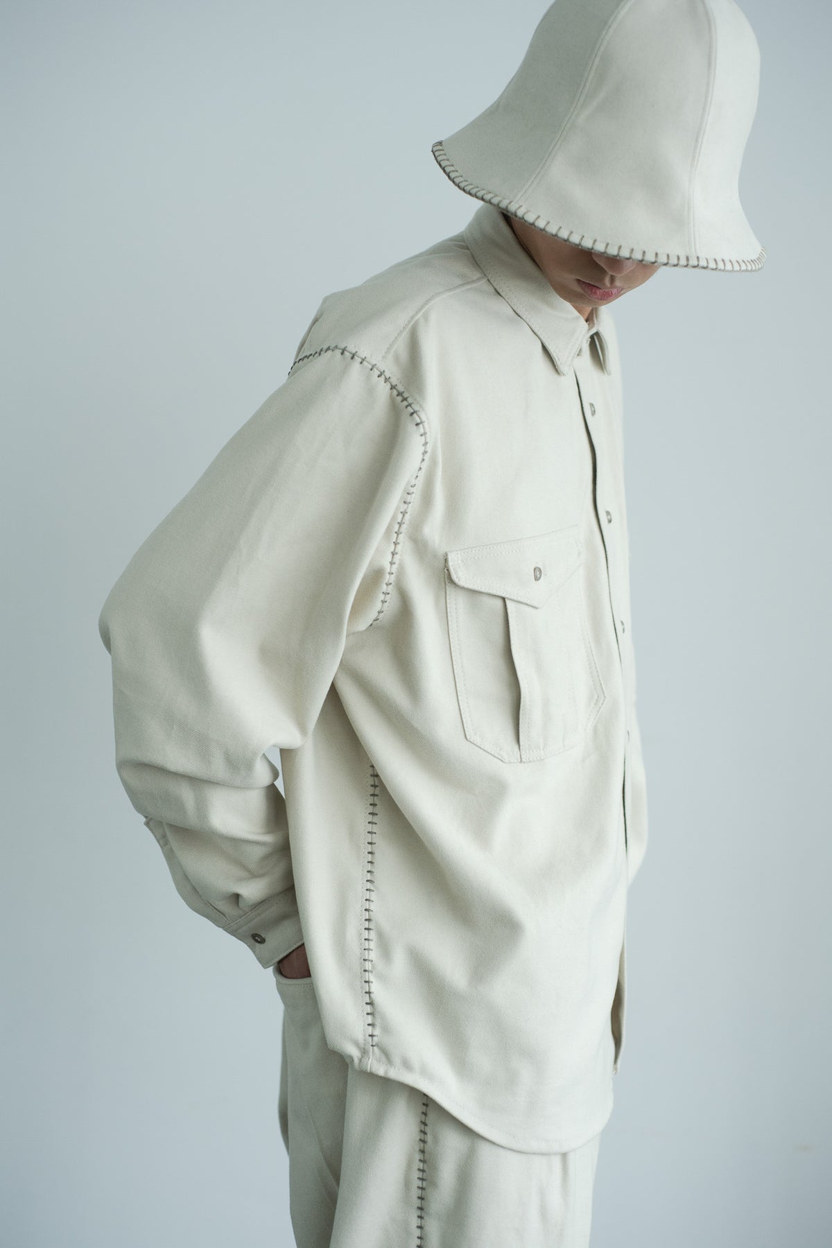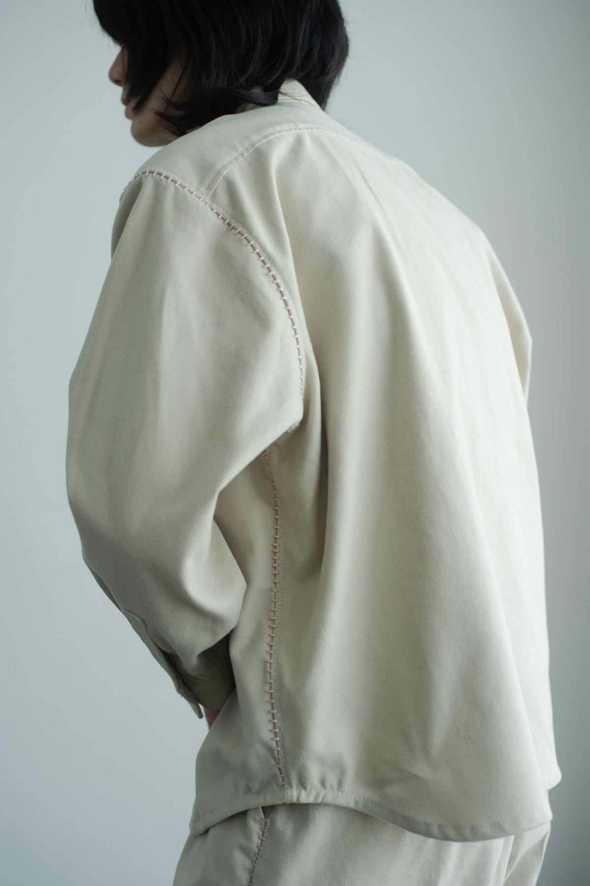 肉厚のネル素材は、粉雪の様な手触りのスエード起毛を施し深いウォーム感を醸し出しております。