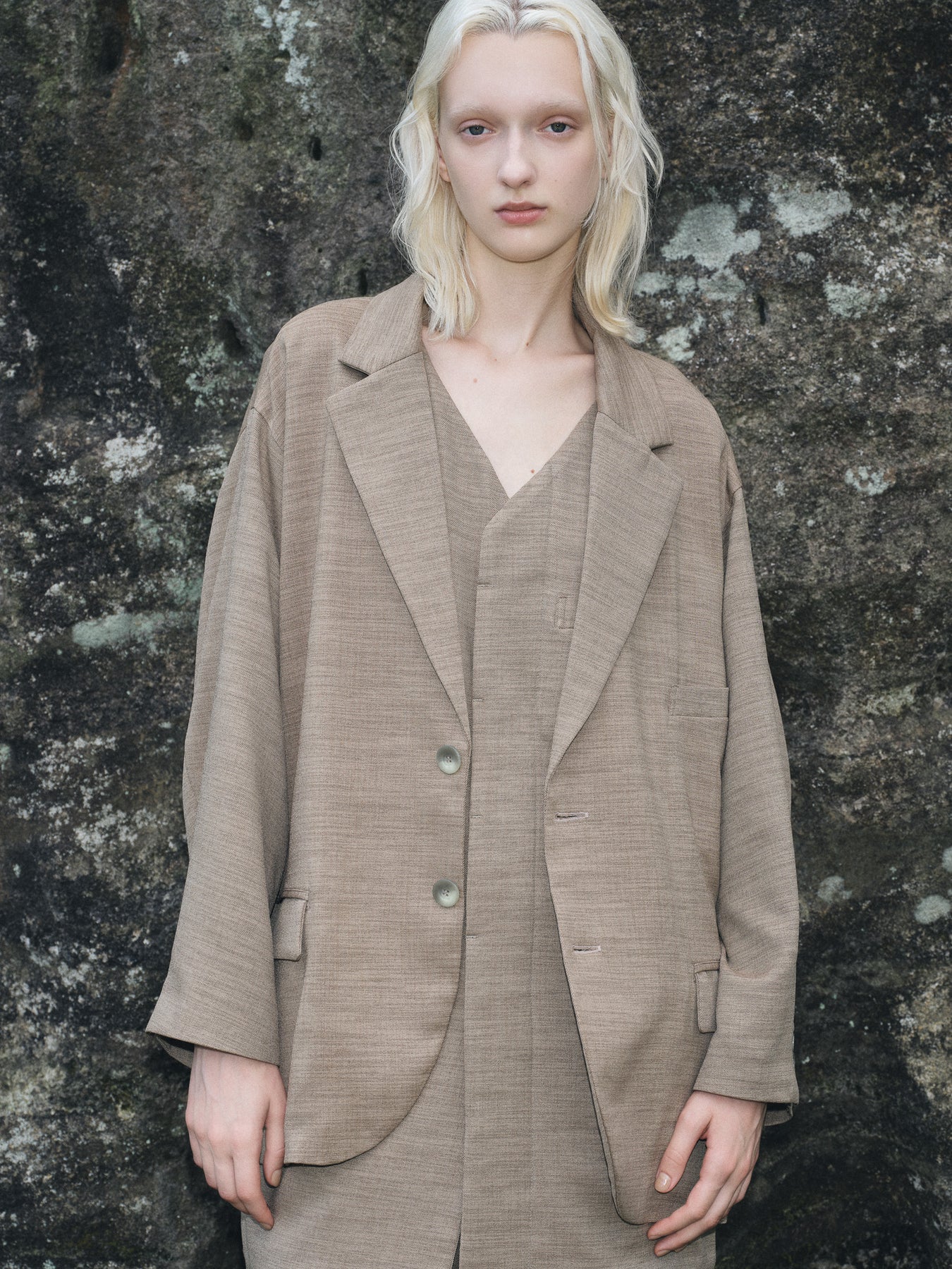 好評を得ていたオーバーサイズの2B jacketをサイズダウンの今の流れを加味し、少しだけ緩い雰囲気へとリサイズしました