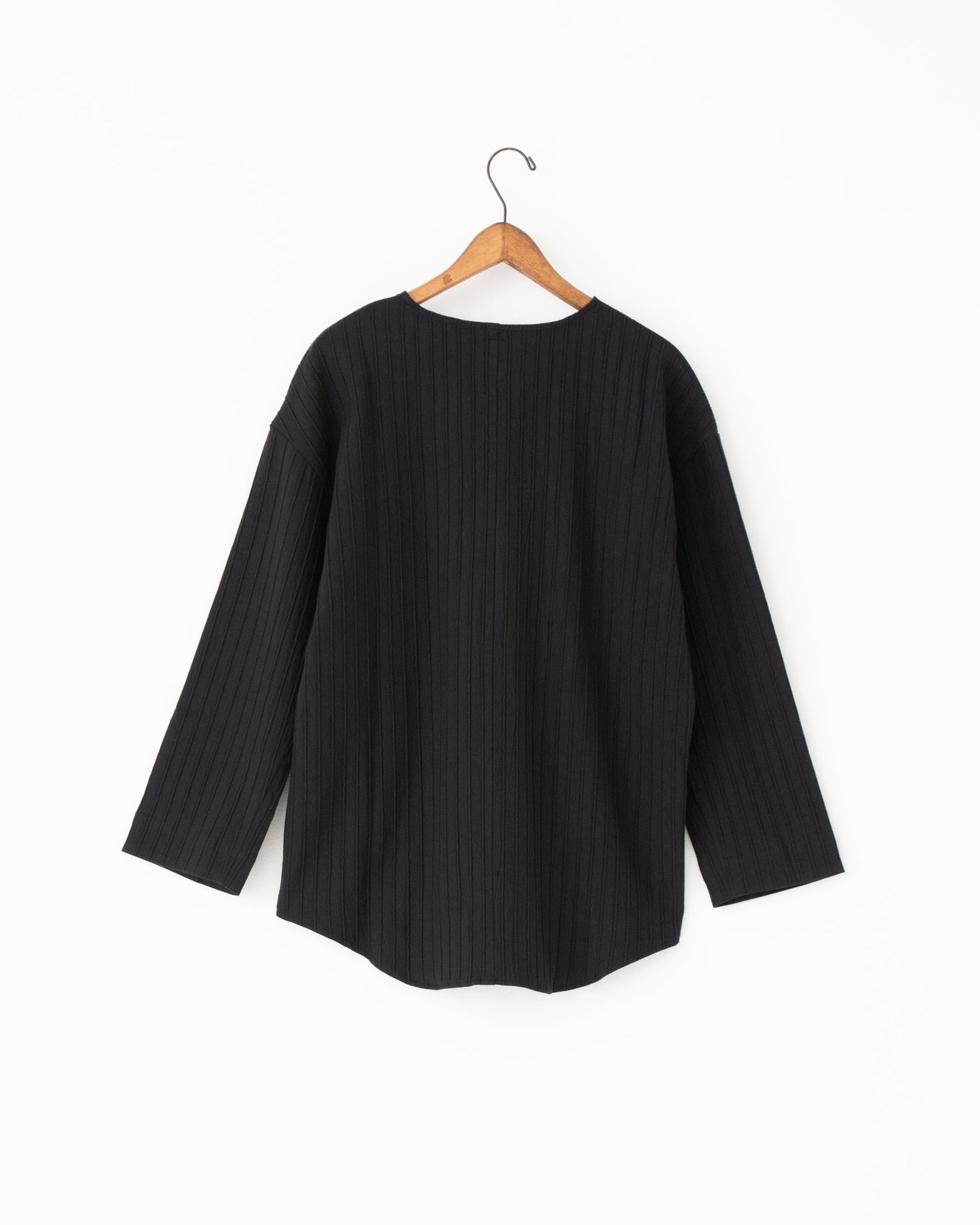 浅めのVネックは スッキリとして艶っぽい印象はなく多様なボトムスと相性よくスタイリングして頂けます。