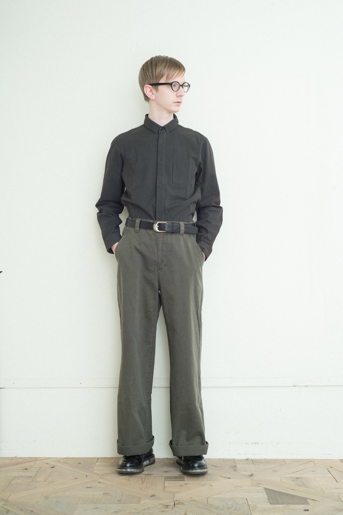 quality:cotton 100%やや厚手のムラ糸ヴィンテージサテン16番手のムラ糸を、ヨコ糸に使用する事でヴィンテージ感のあるルックスに仕上がっています。SG加工(染料染めと顔料染めを併用した染色方法)を施された生地を、製品でストーンバイオ加工にて、程よい使用感を醸し出す仕上げをしています。